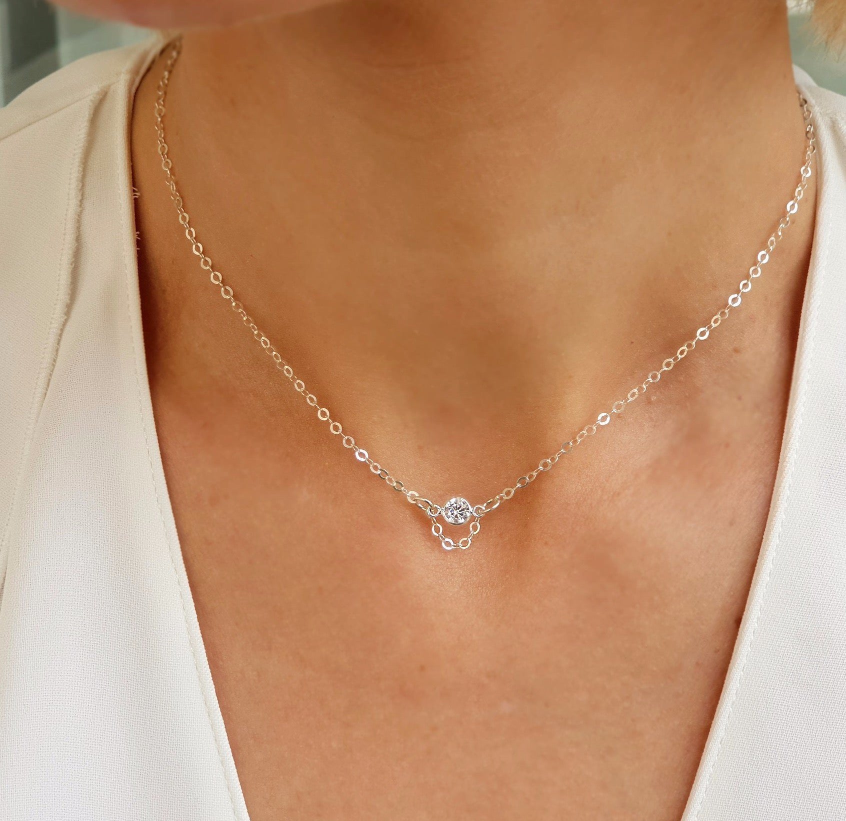 Mary & Jules Halskette 925 Sterling Silber - Choker Mit Plättchen & Karabinerverschluss