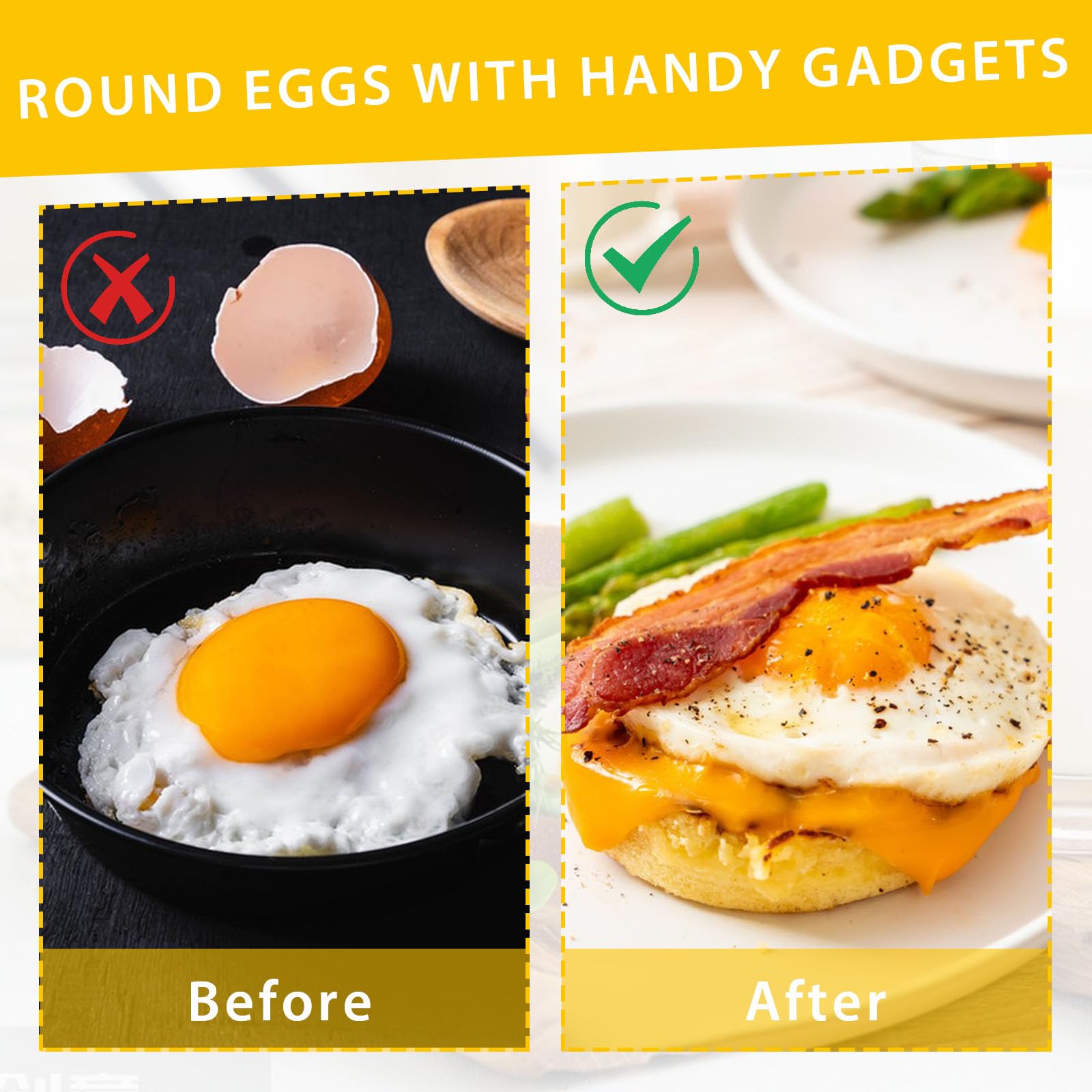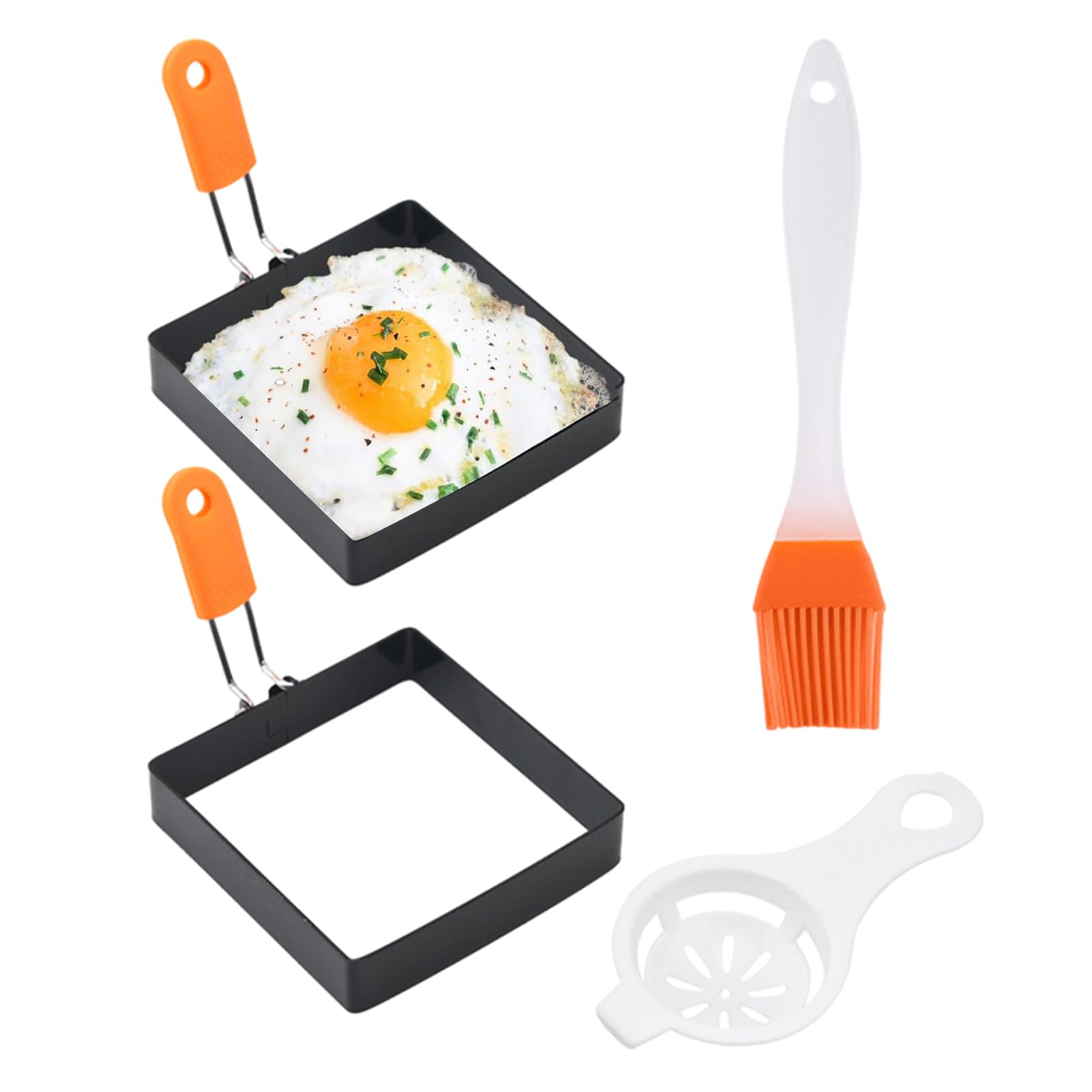Hey Frühstücks-Fans! Diese Eierringe sind der absolute Hit für perfekte Spiegeleier, jeden Tag! Mit 8,9cm Durchmesser kriegst du genau die richtige Größe hin - nicht zu klein, nicht zu groß. Das 4er-Set bedeutet: Du kannst vier Eier gleichzeitig machen - super praktisch, wenn die ganze Familie frühstückt! Die Antihaft-Beschichtung ist mega - nichts klebt an, und die Reinigung ist ein Kinderspiel! Einfach in die Spülmaschine oder kurz mit warmem Wasser abspülen. Der klappbare Edelstahl-Griff mit der integrierten Ölbürste ist genial - alles in einem! So geht's: Pfanne vorheizen, Ringe einfetten, Ei rein und bei niedriger Hitze 3 Minuten warten - fertig ist das perfekte Spiegelei! Aber das beste: Du kannst nicht nur Eier machen! Auch Pancakes, kleine Burger-Patties oder Omeletts gelingen damit super! Die Ringe sind auslaufsicher - kein Ärger mit Ei in der ganzen Pfanne! Das 2,5mm dicke Griff-Schutz sorgt dafür, dass du dich nicht verbrennst! Total einfaches Küchen-Utensil, das aber einen riesen Unterschied macht! Perfekt als Geschenk für alle, die gerne kochen - deine Mama, Oma oder einfach für dich selbst!
