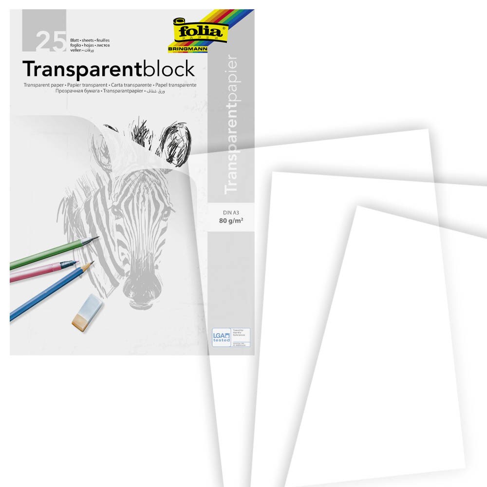 Perfekt für kreative Köpfe! Dieser folia Transparentpapier-Block mit 25 Blättern in DIN A3 ist ideal zum Abpausen, Zeichnen und Skizzieren. Mit 80g/qm ist das Papier stabil genug für verschiedene Zeichentechniken, aber dennoch schön durchscheinend.