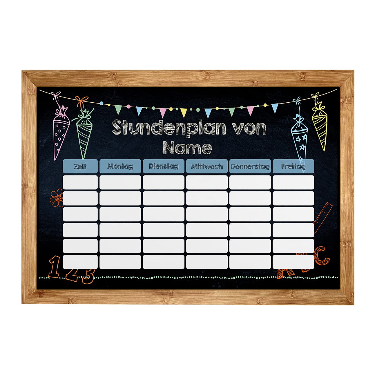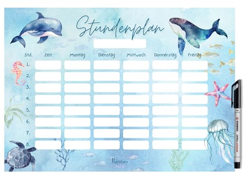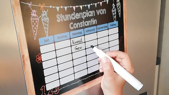 Achtung, Schulstart! Dieser coole Weltraum-Stundenplan im A4-Format bringt Ordnung in den Schulalltag. Mit Raketen, Planeten und Astronauten macht das Planen sogar Spaß! Der Clou: Er ist magnetisch und haftet super an deinem Kühlschrank oder Whiteboard. Einfach mit dem beiliegenden Whiteboard-Marker beschreiben, und wenn sich was ändert, wischst du es einfach ab. Platz für 8 Schulstunden pro Tag, plus extra Felder für Name und Uhrzeiten. Perfekt nicht nur für Schulfächer, sondern auch für AGs, Hobbys und Nachhilfe. So behält die ganze Familie den Überblick! Die abgerundeten Ecken sind sicher für Kinderhände. Ein mega Geschenk zur Einschulung - viel cooler als langweilige Zettel! Ob fürs Kinderzimmer, die Küche oder sogars Klassenzimmer - mit diesem Plan wird Organisation zum Abenteuer. Und das Beste: Er ist wiederverwendbar, also begleitet er dein Kind durch die ganze Schulzeit!