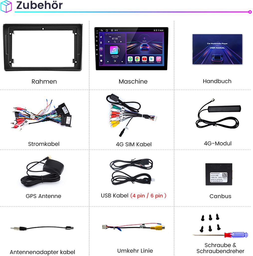 Willst du ein modernes Android Radio in deinen Audi A4 B6/B7 einbauen? Dieser Adapter macht's möglich! Speziell für die Modelle 2002-2008 entwickelt, inklusive S4 und RS4 Versionen. Der Rahmen ist für 2 DIN 9 Zoll Radios ausgelegt und sieht aus wie original. Das besondere: Die Canbus Box ist schon dabei - das spart extra Kosten und Installationsaufwand. Aus schwarzem ABS-Kunststoff gefertigt, passt er perfekt ins Armaturenbrett deines Audis. Kein lästiges Basteln mehr, sondern plug-and-play! Dein Fahrzeuginnenraum wirkt sofort moderner und hochwertiger. Perfect für alle, die auf Navigation, Bluetooth und Multimedia nicht verzichten wollen. Einfach das alte Radio ausbauen, neuen Rahmen einsetzen, Android Radio anschließen - und schon genießt du alle Features eines modernen Infotainment-Systems. Vergiss lästige Kabel und Inkompatibilitäten - mit diesem Set klappt der Einbau garantiert!
