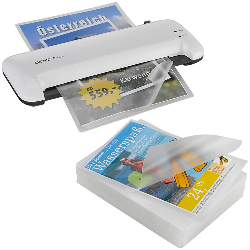 Schütze deine wichtigsten Dokumente, Fotos und Urkunden vor Schmutz, Feuchtigkeit und dem Zerreißen! Dieses praktische Laminiergerät von General Office ist perfekt für den Heimgebrauch. Es laminiert alles bis zum Format A4 - von Visitenkarten über Fotos bis hin zu wichtigen Dokumenten. In nur unter 4 Minuten ist das Gerät einsatzbereit und schafft dann bis zu 30 cm pro Minute. Das PCT-Heizsystem verhindert lästige Blasenbildung. Im Lieferumfang sind bereits 40 Laminierfolien im Format A4 enthalten - du kannst also sofort loslegen! Auch dickere Papiere bis 0,5 mm sind kein Problem. Der Anti-Blockier-Hebel hilft, falls mal was stecken bleibt. Mit den Gummifüßen steht das Gerät sicher auf dem Tisch. Einfach den Eurostecker in die Steckdose - und deine Dokumente bekommen einen professionellen Schutz!