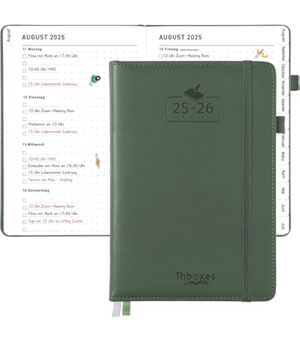 Perfekte Organisation für 2025/2026! Dieser A5 Terminplaner hat das cleverste System: 1 Tag 1 Seite, 1 Wochenende 1 Seite. Mit 340 Seiten und 20 Linien pro Seite - genug Platz für alle Termine. Hardcover schützt vor Beschädigungen. Maße: 21x14,5cm - handlich aber mit viel Schreibfläche. Von Juli 2025 bis Juni 2026 - ideal fürs Schul- oder Geschäftsjahr. Mit praktischem Lesezeichen. Perfekt als Bullet Journal, Tagebuch oder Familienplaner. 70g/m² Papier - keine Durchdrücker! Macht das Planen zum Vergnügen. Einfach aufschlagen und den Überblick behalten!