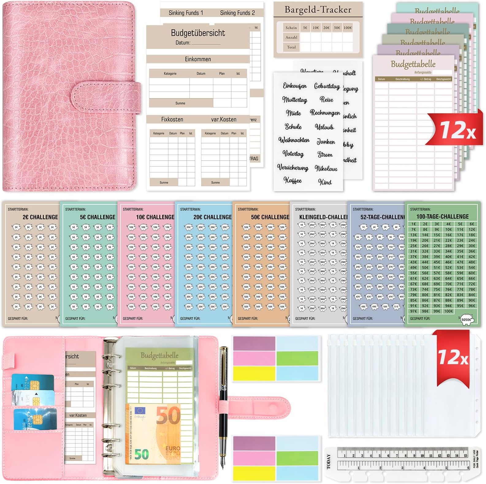 Endlich die Finanzen im Griff! Dieser Agoer Budget Planner im handlichen A6 Format ist dein bester Freund beim Sparen und Budgetieren. Im Set ist alles dabei was du brauchst: Ein schicker Lederbinder, Reißverschluss-Beutel für Bargeld, Klapptaschen, Budgetblätter und sogar Aufkleber zum Gestalten. Die Umschlagmethode (Cash Stuffing) hilft dir, dein Geld besser einzuteilen - du siehst genau, was wofür zur Verfügung steht. Super organisiert mit verschiedenen Fächern für Karten, Scheine und wichtige Papiere. Der Magnetverschluss hält alles sicher zusammen und die robusten Ringe bieten genug Platz für alle deine Finanzunterlagen. Perfekt für unterwegs - passt in jede Handtasche! Ob für monatliche Budgetplanung, Sparziele oder einfach um den Überblick über Ausgaben zu behalten - mit diesem Planner wird Finanzmanagement zum Kinderspiel. Einfach anfangen und sich über mehr Kontrolle freuen!