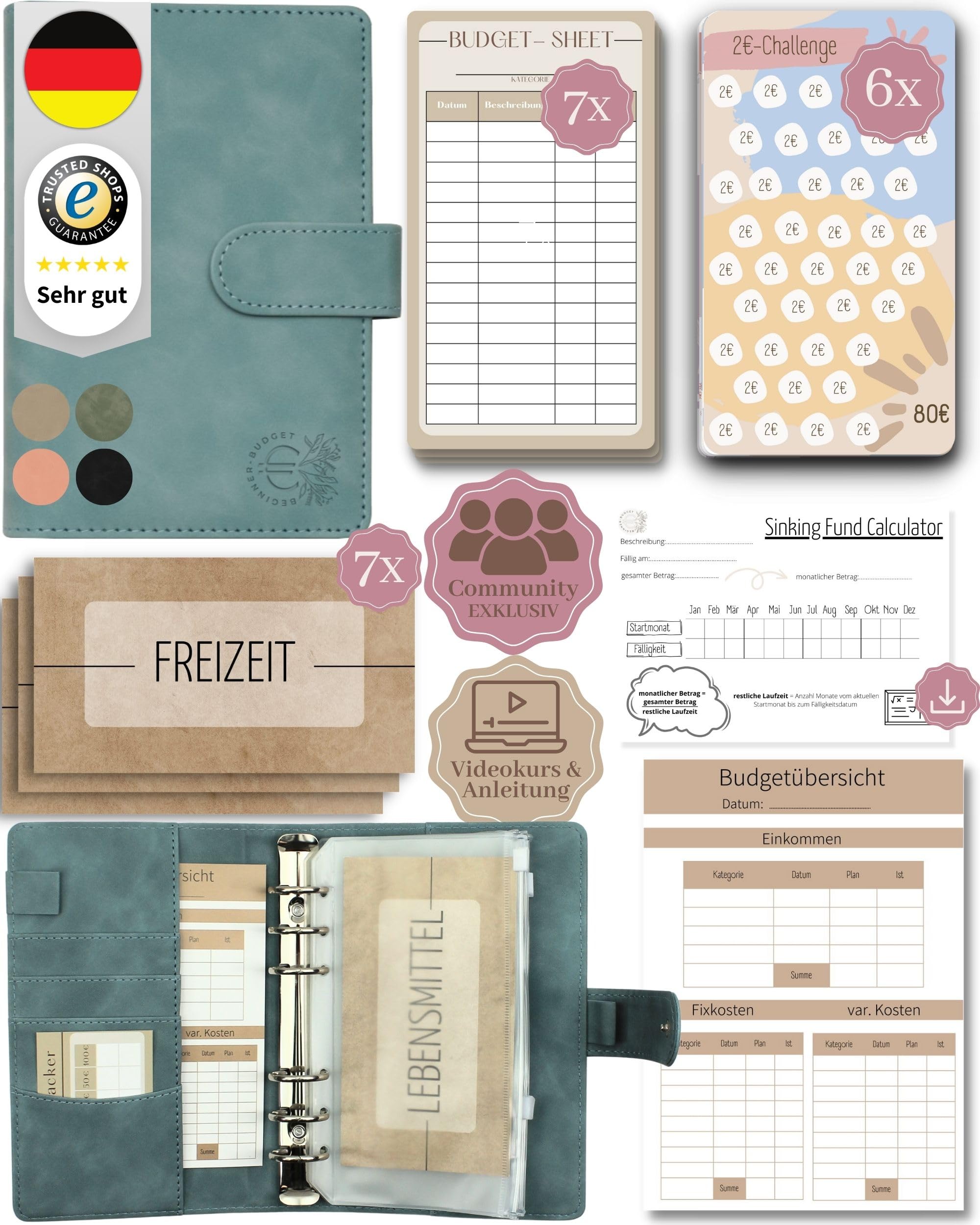 Du willst endlich Ordnung in deine Finanzen bringen? Dieser coole Spar-Ordner hilft dir dabei! Im handlichen A6 Format (18,8x13,5cm) - passt in jede Tasche! Aus wasserdichtem Kunstleder - hält lange und sieht stylisch aus! Mit 12 Budget-Karten und 8 Reißverschluss-Fächern - perfekt um Bargeld, Münzen und Rechnungen zu organisieren! Abnehmbarer Ringmechanismus - du kannst alles ganz einfach umsortieren! Inklusive Aufkleber für die Kategorien - mach's dir persönlich! Super für Reisen, Zuhause oder im Büro! Ob für Erwachsene oder Kinder - jeder kann damit lernen, besser mit Geld umzugehen! Nimm ihn überall mit und behalte deine Finanzen im Griff! Einfach ein praktischer Helfer für mehr Überblick und weniger Stress mit Geld! Leg heute noch los und sieh wie einfach Sparen sein kann! Mit diesem Ordner wird Budgetplanung zum Kinderspiel!