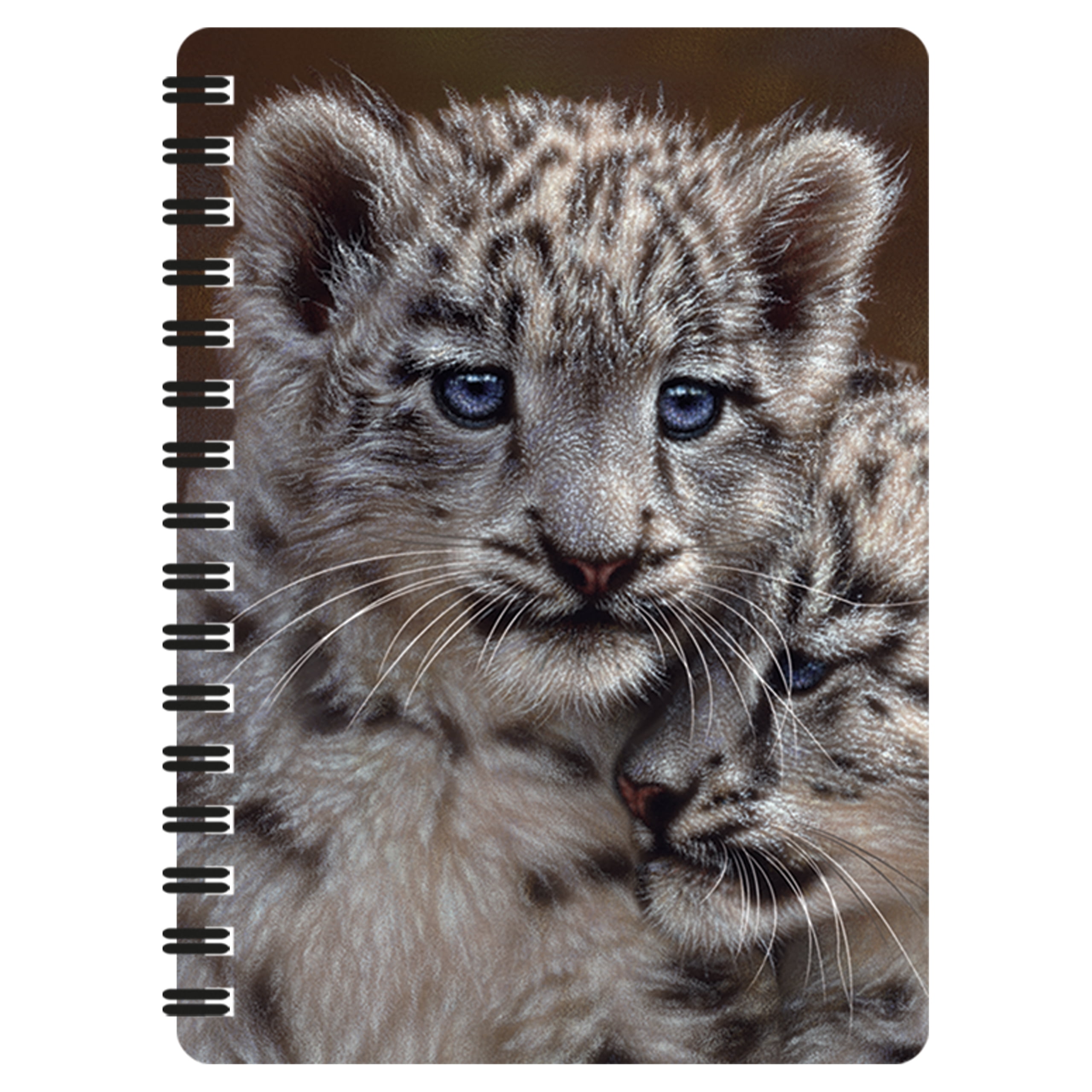 Oh, wie süß ist denn dieses 3D-Notizbuch! Das zeigt zwei entzückende Schneeleopardenbabys, die auf nem arktischen Berg ruhen - ein Original-Kunstwerk vom bekannten Künstler Joh Naito. Im A6-Format (14,5x10,5cm) passt es perfekt in jede Tasche. \\n\\nWas das Notizbuch so besonders macht: Die Lentikular-Technologie macht das Bild lebendig und dreidimensional! Je nachdem, aus welchem Winkel du guckst, siehst du andere Details. Das Cover ist hart und spiralfgebunden - also robust für unterwegs. \\n\\nDrinnen findest du 80 linierte Seiten aus Recycling-Papier - perfekt für Notizen, Einkaufslisten oder Ideen. Ob für die Schule, Uni oder einfach nur für dich - damit machst du immer ne gute Figur. Das Notizbuch ist auch ein super Geschenk für Tierliebhaber oder alle, die was Besonderes mögen. \\n\\nAlso, wenn du mal wieder ein Notizbuch brauchst, das nicht nur praktisch ist, sondern auch noch richtig gut aussieht - dieses 3D-Notizbuch ist genau das Richtige! Damit holst du dir nicht nur ein nützliches Accessoire, sondern auch noch ein kleines Kunstwerk für unterwegs. Einfach magisch!