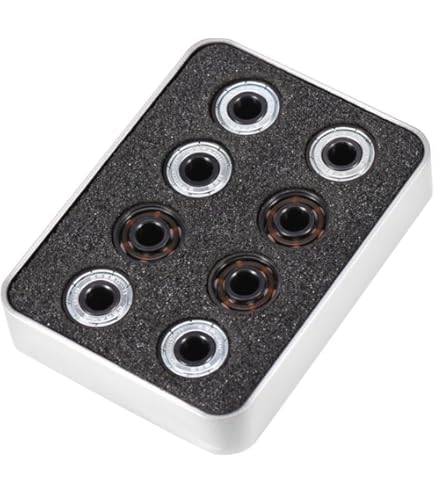 Richtig Speed machen! Diese 10 lila ABEC 9 Kugellager bringen deinen Scooter oder Skateboard auf Trab. Mit 2,1 cm Außendurchmesser und 0,7 cm Höhe passen sie perfekt für die meisten Modelle. Aus hochwertigem Stahl gefertigt, sind sie nicht nur super schnell, sondern auch korrosionsbeständig und staubdicht. Das bedeutet: Längere Lebensdauer und konstante Performance. Du wirst merken, wie dein Board schneller beschleunigt und weiter rollt - selbst mit weniger Schwung. Perfekt für alle, die ihr Fahrerlebnis verbessern wollen. Die Lager sind sofort einsatzbereit - einfach einbauen und losrollen! Ob du nun Tricks übst oder einfach nur cruisen willst: Mit diesen Lagern macht alles mehr Spaß. Und mit 10 Stück im Set hast du genug Ersatz für die Zukunft oder kannst auch gleich mehrere Boards ausstatten. Achtung: Die Maße können mal 1-3 mm abweichen - das ist ganz normal bei Handmessung. Einfach bestellen, einbauen und den Geschwindigkeitsrausch genießen!