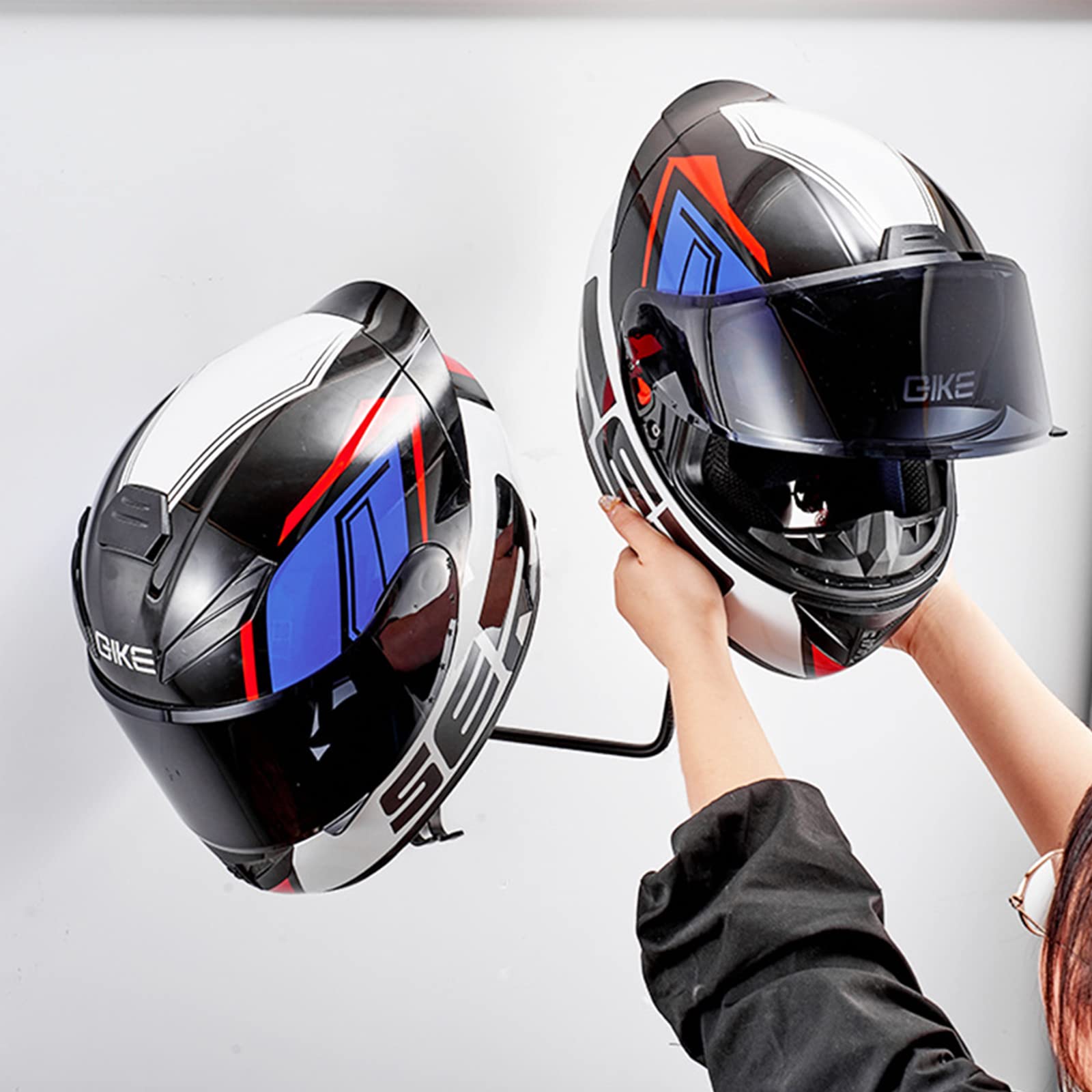 Endlich Ordnung in der Garage! Diese 2 schwarzen Helmhalterungen aus bruchfestem ABS-Kunststoff halten bis zu 5kg - perfekt für Motorradhelme, aber auch für Fahrradhelme, Lederjacken oder Schlüssel. Einfache Montage mit beiliegenden Schrauben und Dübeln. Das matte Design ist rutschfest und passt zu jedem Einrichtungsstil. Spart Platz und sieht dabei noch stylisch aus. Nie wieder Helme auf dem Boden oder überall verstreute Ausrüstung! Einfach an die Wand, Helm aufhängen und fertig.