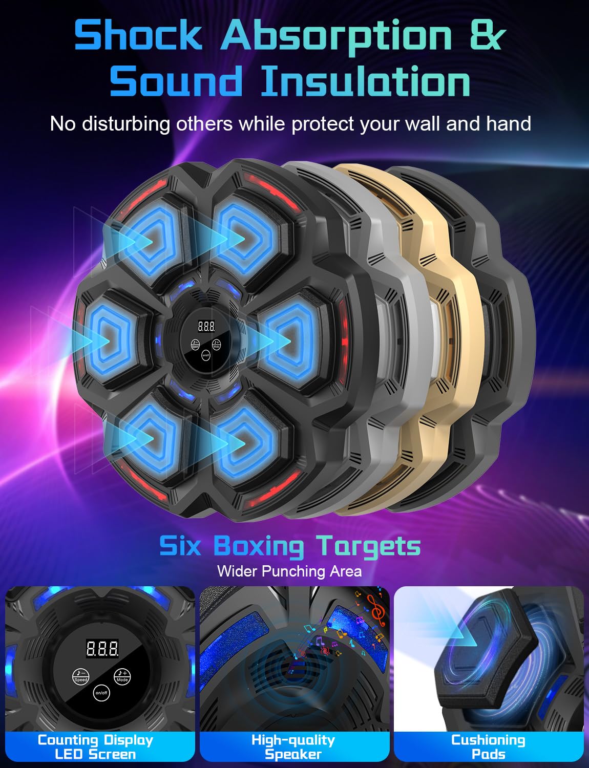 Boah, diese Musik-Boxmaschine von AONESY macht Fitness richtig spaßig! Die synchronisiert sich per Bluetooth mit deiner Lieblingsmusik und die LEDs blinken im Takt - da kommt richtig Stimmung auf. Mit 9 verschiedenen Trainingsmodi und 9 Geschwindigkeitsstufen ist für jeden was dabei, ob Anfänger oder Profi. Das LED-Display zeigt dir live deine Trefferzahl an, damit du dich ständig verbessern kannst. Die Schlagfläche ist aus weichem Schaumstoff, schont deine Hände und hat eine super Rückfederung. Aber Achtung: Immer mit den mitgelieferten Boxhandschuhen trainieren! Einfach an der Wand montieren mit dem doppelseitigen Klebeband - die Höhe ist verstellbar für Groß und Klein. Perfekt um Stress abzubauen, Koordination zu verbessern und ganzkörpertraining zu machen. Spart dir den Weg ins Fitnessstudio - so macht Training zuhause richtig Laune!