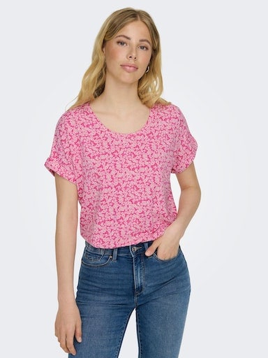 Wow, dieses ONLY Top ist genau dein Style! Mit dem bunten Allover-Print und dem lässigen Schnitt machst du definitiv was her diesen Frühling. Das Shirt ist etwas kürzer geschnitten - total angesagt und perfekt zu High-Waist-Hosen. \\n\\nAus weicher, hochwertiger Baumwolle fühlt es sich super angenehm auf der Haut an. Der Rundhalsausschnitt und die langen Ärmel geben dem ganzen einen coolen, aber nicht zu auffälligen Look. Perfekt für die Schule, zum Shoppen oder einfach so. \\n\\nOnly knows halt, was Jugendliche wollen! Das Design ist frisch, die Qualität stimmt und der Preis ist fair. Ein Must-Have für deine Frühlingsgarderobe - ob zu Jeans, Rock oder Jogginghose, dieses Top passt immer. Wichtig: Normale Pflege reicht, also einfach waschen und wieder tragen!