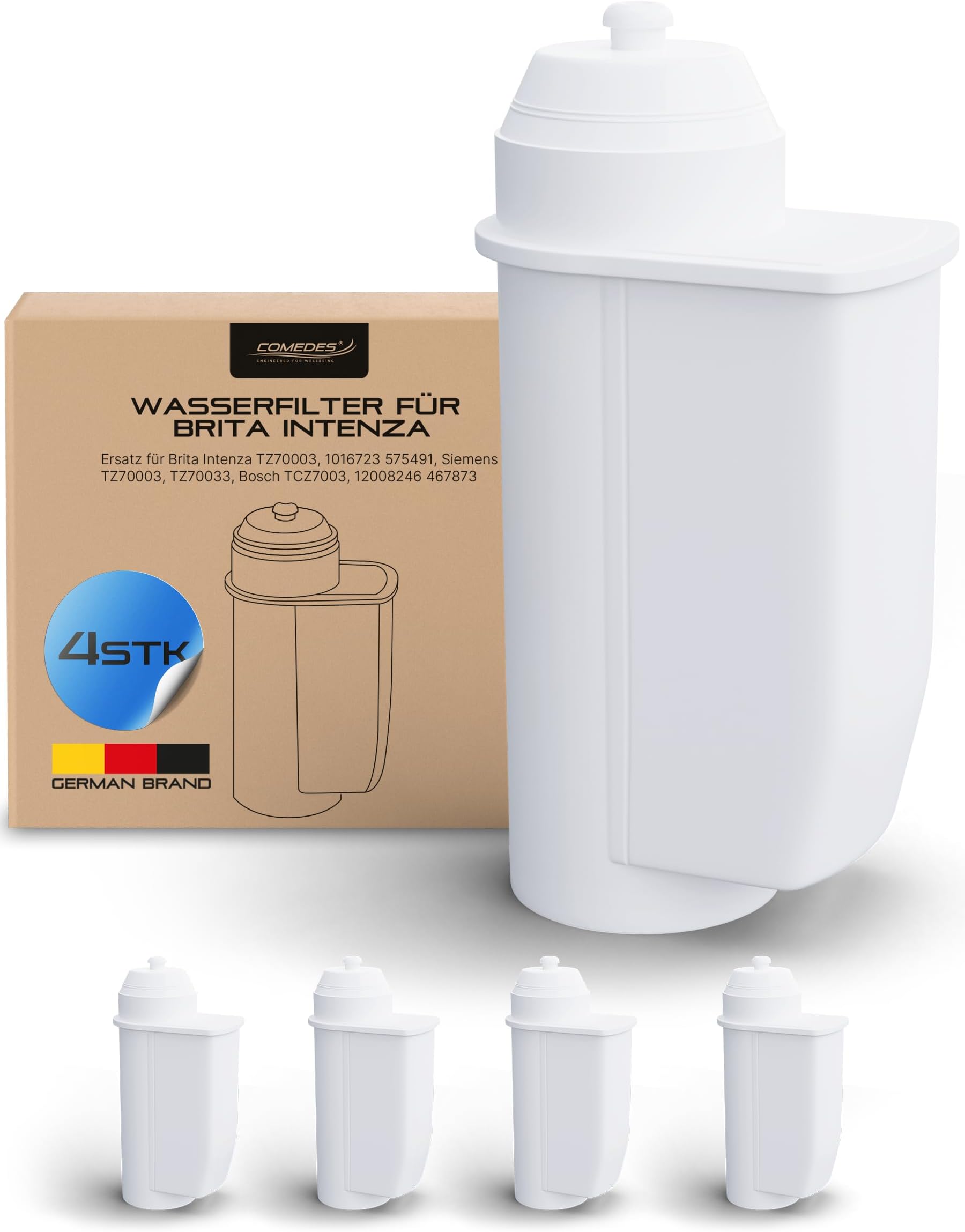 Hey Kaffeeliebhaber! Diese AQUALTRA Wasserfilter sind genau das Richtige für deine Siemens oder Bosch Kaffeemaschine. Das 4er Set hält ewig und sorgt für perfekten Kaffeegenuss. Die Filter nutzen Kokosnussschalen-Aktivkohle und natriumfreies Harz - entfernen Kalk, Chlor und Gerüche, aber lassen die wichtigen Mineralien im Wasser. Dein Kaffee schmeckt einfach besser und deine Maschine bleibt länger fit! Kompatibel mit EQ3, EQ5, EQ6, EQ7, EQ8, EQ9, S700 und vielen mehr. Einfach alle 50 Liter wechseln - je nach Wasserhärte. Spart dir teures Flaschenwasser und ist umweltfreundlicher. Passt nicht für Brita Intenza+ oder Saeco - also vorher checken! Mach deinen Kaffee zum Erlebnis!