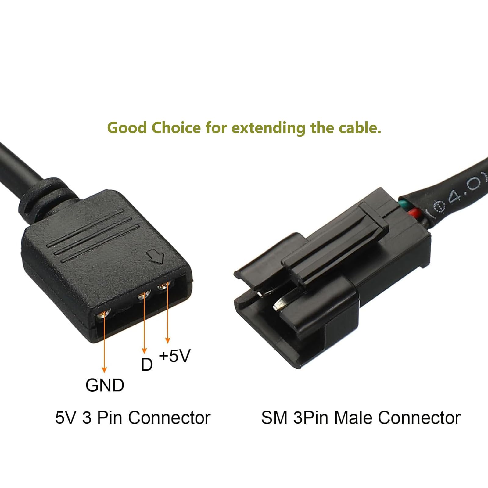 RUNCCI-YUN ARGB Verlängerungskabel 5er Set - 5V 3-polig Für RGB Lüfter & LED Streifen