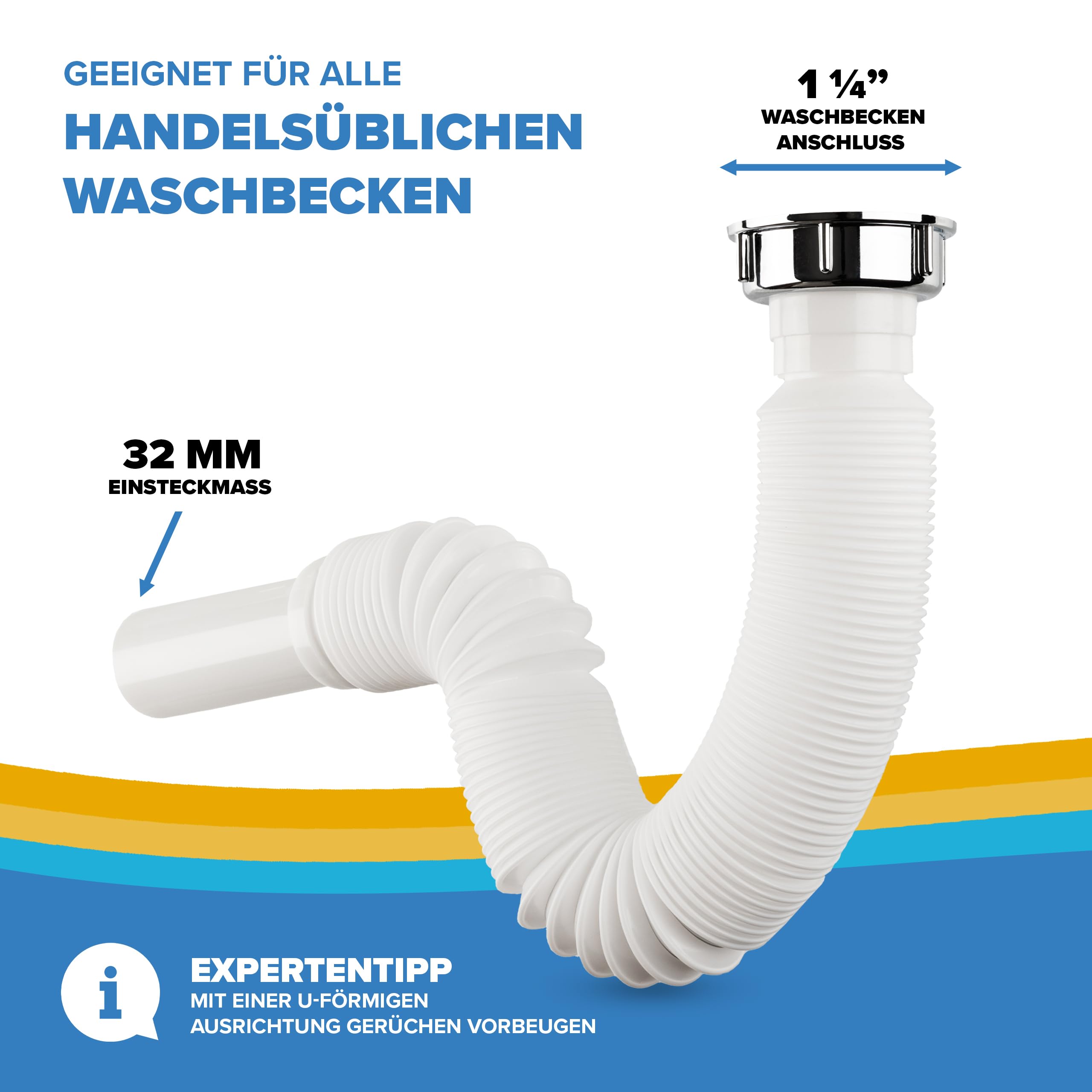 Ohje, verstopfter Abfluss? Mit diesem AROMUJOY Siphon Set gehörst du der Vergangenheit an! 🚿\n\nDas komplette Set besteht aus flexiblem Ablaufschlauch und Pop-Up-Filter - alles in Weiß aus hochwertigem Edelstahl und ABS-Material. Korrosionsbeständig, temperaturbeständig und mega langlebig!\n\nDer Clou: Das dreifache Anti-Geruchs-Design! Der Geruchsverschluss schließt automatisch, die abnehmbare Wasserdichtung hält Fremdkörper zurück und der U-förmige Siphon speichert Wasser - keine unangenehmen Gerüche mehr!\n\nDie Länge lässt sich flexibel von 290 bis 820 mm einstellen - passt also in fast jedes Waschbecken mit 30-32 mm Abflussdurchmesser.\n\nInstallation? Super einfach! Ohne Spezialwerkzeug schnell montiert. Perfekt für Waschbecken mit Überlauf oder ohne, mit Schubladen oder Wandabflüssen - total vielseitig!\n\nOb in Bad oder Küche - dieses Set macht deine Abflüsse wieder fit. Endlich keine Rückstau-Probleme mehr und alles hygienisch sauber!