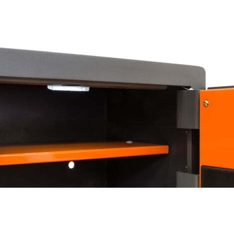 Achtung, Wertvolles zu Hause? Dieser ARREGUI Tresor bietet maximale Sicherheit! Mit 57 Litern Fassungsvermögen und den Maßen 52x38,5x36 cm (Außen) passt er perfekt in Haus oder Gewerbe. Die doppelwandige Front mit 10+3 mm Bohrschutz und 7 Säge- und Aufhebelschutz-Drehbolzen (je 22 mm) macht das Aufbrechen fast unmöglich. Das 2-Faktor-Sicherheitsschloss mit Elektronikcode PLUS Schlüssel bietet doppelten Schutz. Mit LED-Beleuchtung, innerem Regal und Verankerungsmöglichkeit. 57 kg schwer - nicht so einfach wegzutragen! Komplett mit 2 Schlüsseln, Batterien und Montagematerial. Für alle, die hohe Sicherheitsanforderungen stellen!