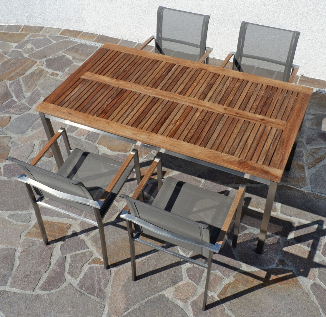 • ASKON Gartengarnitur 5-teilig - Stapelbare Aluminium Stühle Mit Teak-Optik Tisch