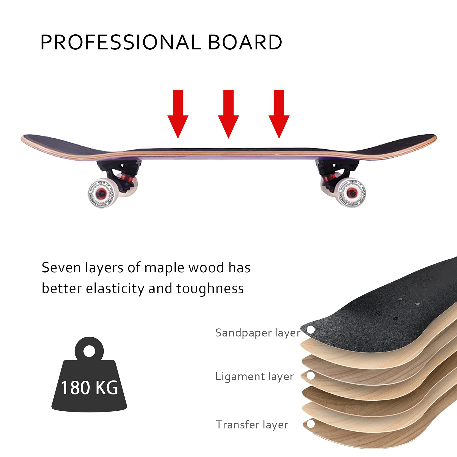Alter, dieses ATTABO Skateboard ist richtig cool! In knalligem Grün, 8 Zoll breit und 31 Zoll lang - perfekt für Tricks und Cruisen. Das Deck aus 9-lagigem Ahornholz ist mega stabil und stoßdämpfend. Mit den 5 Zoll Aluminiumachsen hast du totale Kontrolle, und die 52mm Rollen (78A Härte) grippen auf jedem Untergrund. Die ABEC-7 Kugellager sorgen für schnelle, leise Läufe - einfach smooth! Wiegt nur 2,2 kg, also super leicht zu transportieren. Hält bis 100 kg aus, die rutschfeste Oberfläche gibt dir sicheren Stand. Ob Skatepark, Stadt oder Weg zur Arbeit - damit machst du überall eine gute Figur. Für Anfänger und Fortgeschrittene gleichermaßen geeignet. Einfach aufsteigen und abheben!