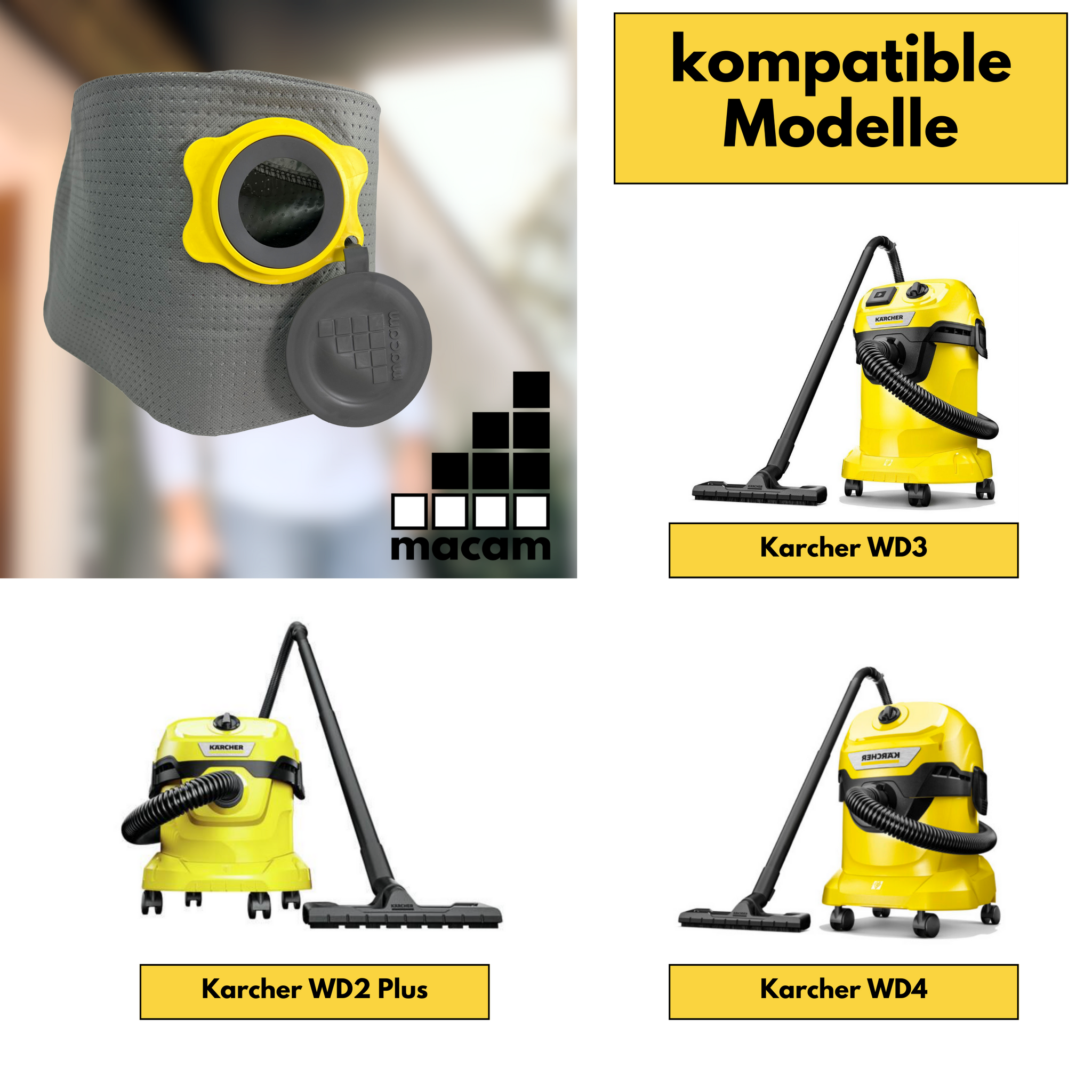 Passen perfekt für Kärcher WD2 Plus, WD3S, WD 3 S, WD 3 V und viele mehr. Auch mit Einhell Modellen wie TC-VC 1820, 1820S oder 1930S kompatibel. Die Beutel haben ein größeres Fassungsvermögen als normale Papierbeutel und sind viel stabiler.