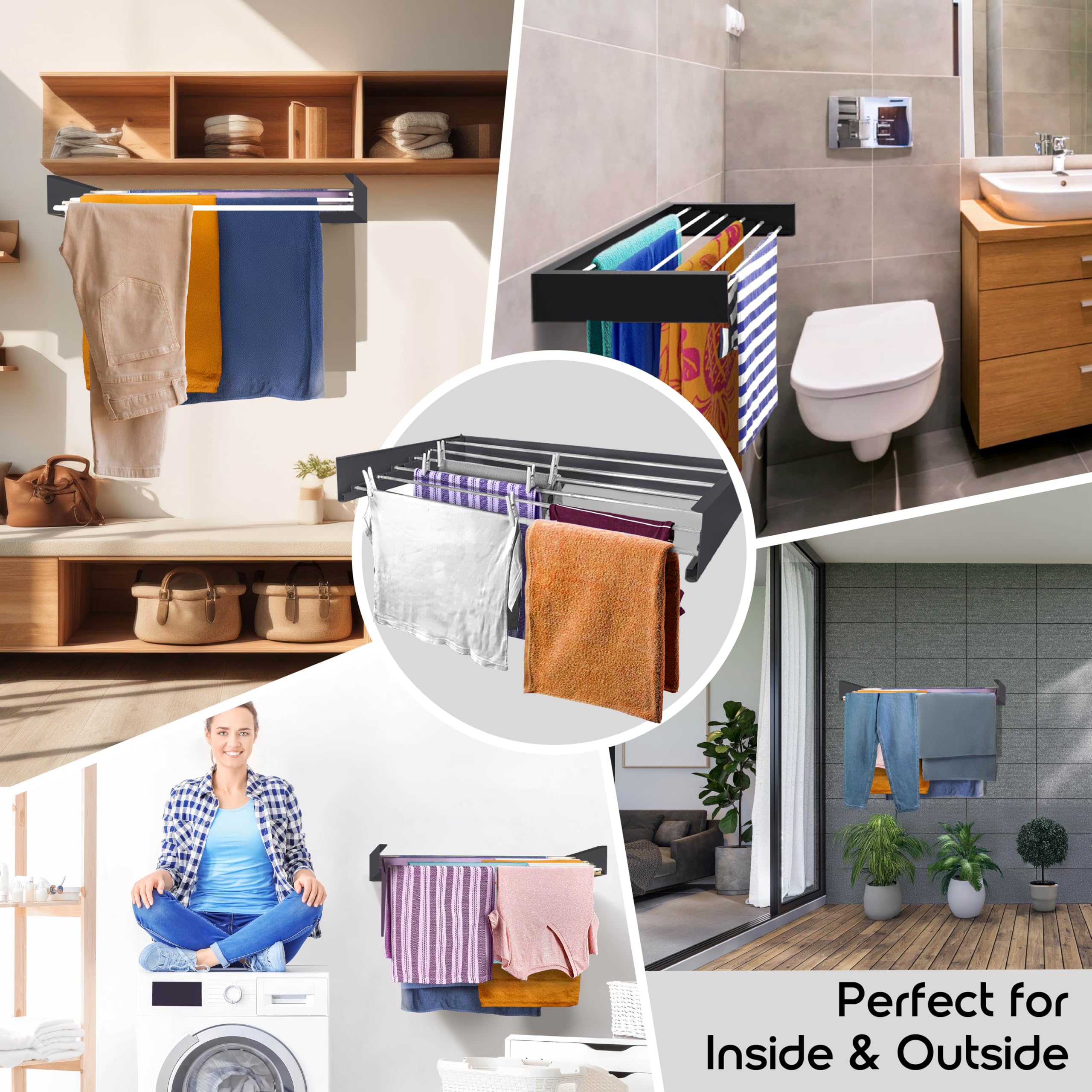 Platzprobleme? Der AYZ Wäscheständer für die Wand ist die Lösung! Nur 3 cm tief wenn eingeklappt - kaum zu sehen. Ausgefahren 100 cm breit, 15 cm hoch. Trägt stolze 35 kg - da kannst du ordentlich Wäsche aufhängen! Aus Metall in Weiß, super stabil (4,2 kg Gewicht) und langlebig. Einfach an die Wand montieren und du hast immer einen Wäscheständer parat - aber keinen im Weg stehenden. Perfekt für kleine Wohnungen, Badezimmer, Balkon oder Garten. Kann auch als Handtuchhalter genutzt werden. Faltbar und klappbar - ideal auch für Camping oder Wohnmobil. Montage ist einfach, liegt alles bei. Sieht modern aus und spart so viel Platz! Endlich keine Wäscheständer mehr die rumstehen und nerven. Drinnen und draußen einsetzbar - ein echter Alleskönner!
