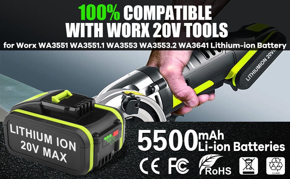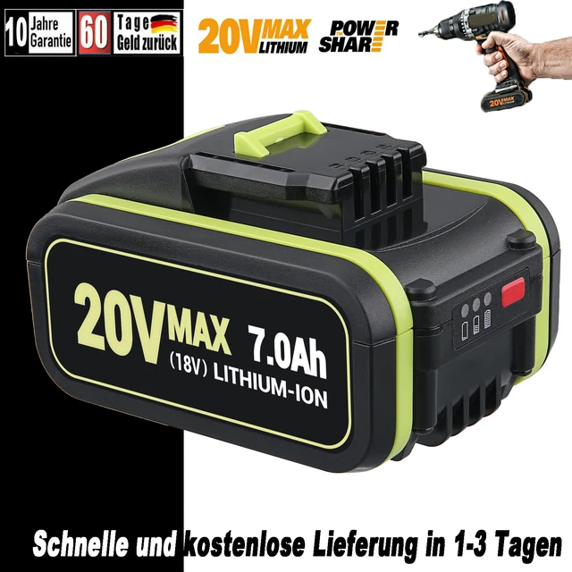 Nie wieder Stromausfall bei der Arbeit! Diese zwei starken 20V Akkus mit je 5000mAh Kapazität sind die perfekte Power-Reserve für deine Worx Elektrowerkzeuge. Kompatibel mit vielen Modellen wie WA3556, WA3551, WX390 und vielen mehr. Die praktische LED-Anzeige zeigt dir immer den Ladezustand an. Mit Schutz vor Überladung, Überhitzung und Kurzschluss - total sicher! Einfach aufladen und loslegen. Ohne Memory-Effekt kannst du sie jederzeit nachladen. Super für lange Arbeitstage im Garten oder bei Renovierungen. Tipp: Immer 5-10 Minuten abkühlen lassen vor dem Aufladen - so halten die Akkus länger! Mit zwei Akkus hast du immer einen geladenen Reserve-Akku parat. Perfekte Alternative zu teuren Original-Akkus - gleiche Leistung, besserer Preis!