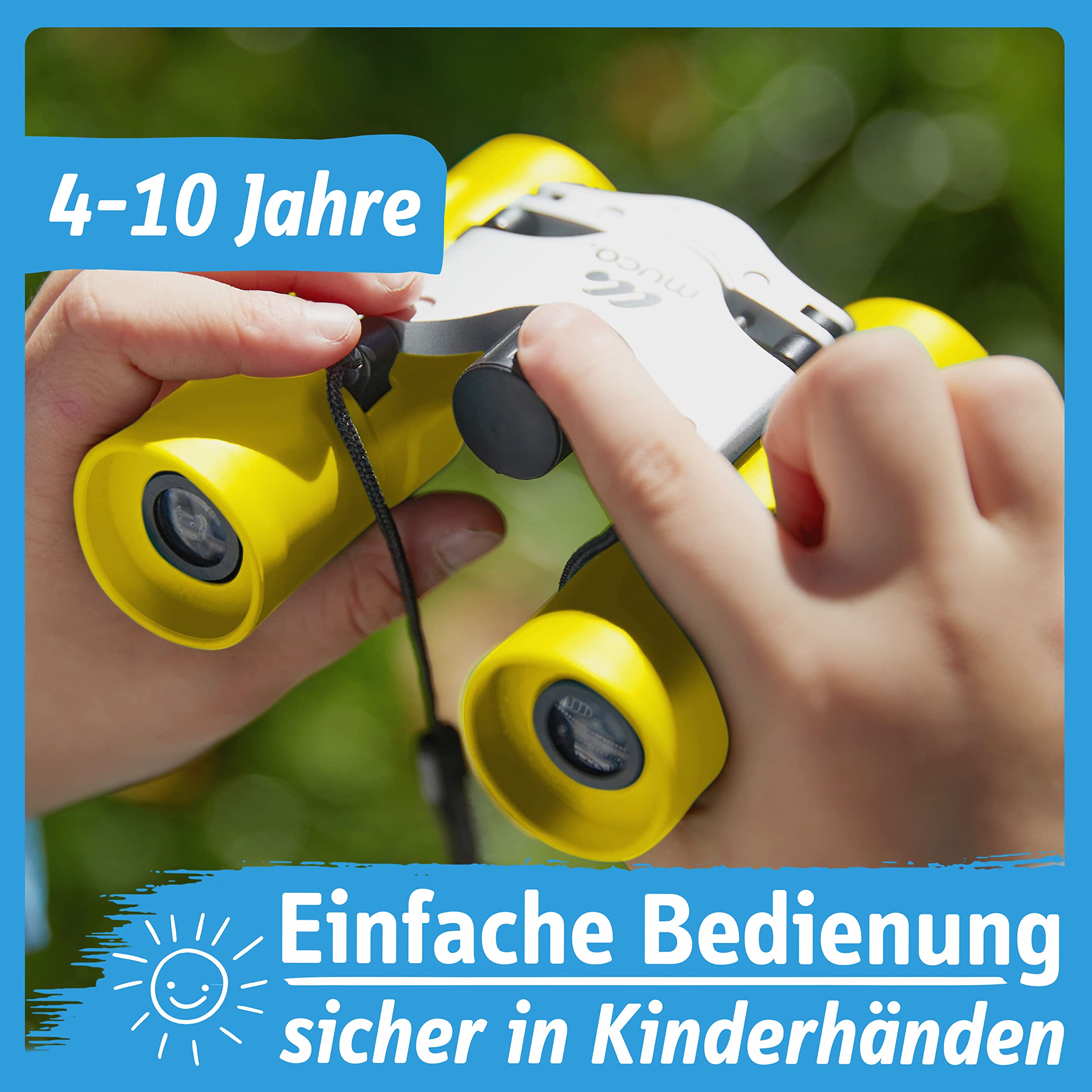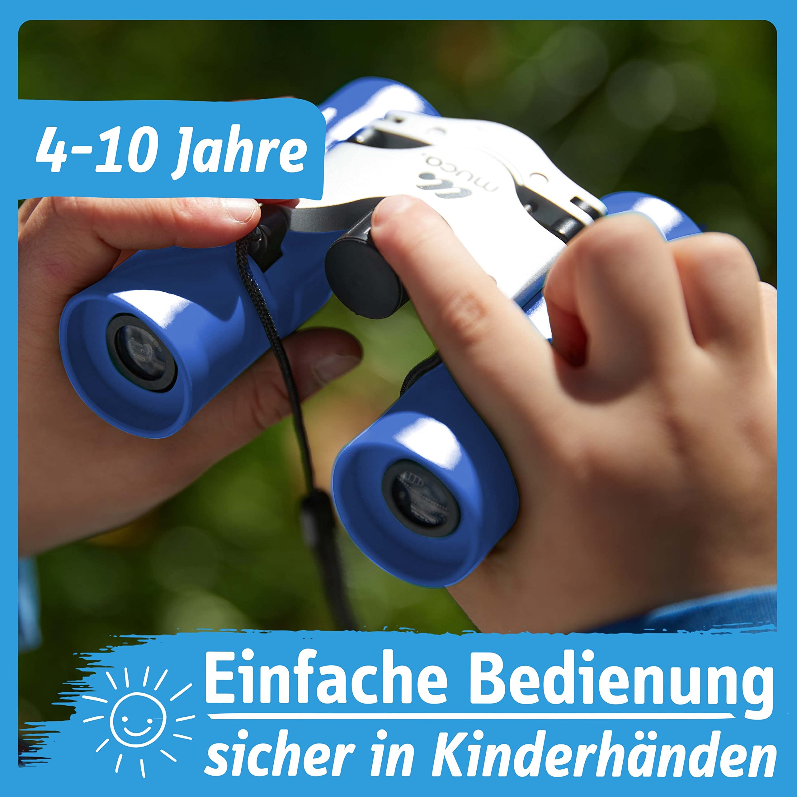 Auf die Plätze, fertig, entdecken! Dieses muca Kinder Fernglas Set ist perfekt für kleine Abenteurer zwischen 4 und 10 Jahren. Mit der 8-fachen Vergrößerung sehen deine Kinder die Welt plötzlich ganz nah - ob Vögel im Baum, Schiffe in der Ferne oder einfach nur die Nachbarskatze. Im Set ist alles dabei, was kleine Naturforscher brauchen: das Fernglas selbst, eine große Lupe für ganz nah dran, ein Mikrofasertuch zum Reinigen und eine praktische Tragetasche für unterwegs. Aus stoßfestem Kunststoff gebaut, übersteht das Fernglas auch mal einen Sturz. Das Trageband verhindert, dass es ganz runterfällt. Fokussierrad und Dioptrien-Ausgleich sind extra einfach für Kinderhände gemacht. Perfekt als Geschenk zu Weihnachten, Ostern oder zur Einschulung - für Jungs und Mädchen gleichermaßen geeignet!