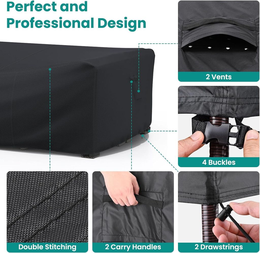 Deine Gartenmöbel verdienen den besten Schutz! Diese Premium-Abdeckplane aus 600D Oxford-Gewebe hält deine Möbel trocken und sauber - egal bei welchem Wetter. Mit den Maßen 180x120x74cm passt sie perfekt auf die meisten Loungesets, Gartentische und Sitzgruppen. Absolut wasserdicht bis 8000Pa, UV-beständig und extrem reißfest - das ist Profi-Schutz für deine Möbel! Die 4 verstellbaren Schnallen und der Kordelzug sorgen dafür, dass die Plane auch bei Sturm sicher sitzt und nicht wegfliegt. Die cleveren Luftventile verhindern Schimmelbildung, besonders wichtig bei Rattan- und Polstermöbeln. Die Oberfläche ist schmutzabweisend - einfach mit dem Gartenschlauch abspritzen und sie ist wieder sauber. Inklusive praktischer Tragetasche für platzsparende Aufbewahrung im Winter. Ob für die Terrasse, den Balkon oder den Garten - deine Möbel bleiben damit immer in Top-Zustand. Kein lästiges Reinigen mehr nach jedem Regen, kein Verblassen der Farben durch die Sonne. Einfach über die Möbel stülpen, festzurren und du musst dir keine Sorgen mehr machen - so einfach kann Gartenspaß sein!