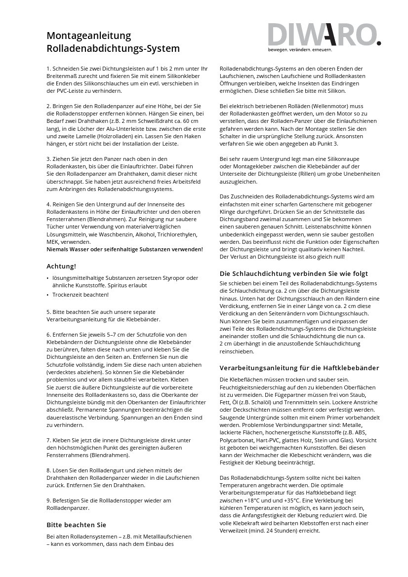 Stoppe Energieverluste und lästige Zugluft! Die DIWARO Rolladenkasten-Abdichtung ist die perfekte Lösung für undichte Rollladenkästen. Mit einer Länge von 1,25 Metern und einer Spaltabdeckung von 11-16 mm passt sie ideal an die meisten Standard-Rollladenkästen. Die weiße PVC-Trägerleiste mit hochflexiblem Silikon-Schlauch ist nicht nur extrem langlebig, sondern auch IFT-geprüft und patentiert. Die Montage ist denkbar einfach: Einfach die beiden Selbstklebebänder von außen am Rollladenkasten oder Fensterrahmen befestigen - kein Öffnen des Rollladendeckels nötig! Das Ergebnis: Bis zu 30% geringerer Wärmeverlust, was sich direkt in niedrigeren Heizkosten bemerkbar macht. Zusätzlich optimierst du den Schallschutz um bis zu 8 dB und verhinderst das Eindringen von Insekten. Auch die lästigen Klappergeräusche beim Rollladenbetrieb gehören der Vergangenheit an. Perfekt für Alt- und Neubauten gleichermaßen geeignet. Diese simple aber effektive Lösung macht dein Zuhause nicht nur komfortabler, sondern spart auch bares Geld - eine Investition, die sich schnell amortisiert!