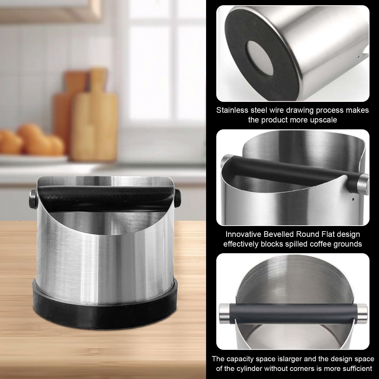 Mann, diese Knock Box ist ein Muss für jede Kaffee-Ecke! Aus robustem 1,1mm Edelstahl mit nem riesigen 1,6 Liter Fassungsvermögen - da passen locker 15-20 Kaffeepucks rein. Das schräge Design ist genial - kein Herumspritzen mehr beim Ausklopfen! Der Klopfstab hat nen Gummimantel, der den Lärm total dämpft - deine Nachbarn werden's dir danken. Und der rutschfeste Boden mit den Gummifüßen sorgt dafür, dass das Teil nicht wild auf der Arbeitsplatte rumtanzt. Super easy zu reinigen - einfach unter Wasser abspülen, und der Klopfstab ist sogar abnehmbar für ne gründliche Reinigung. Ob für daheim, Café oder Büro - damit machst du das Kaffeemachen gleich noch mal so angenehm. Sieht dazu noch richtig professionell aus!