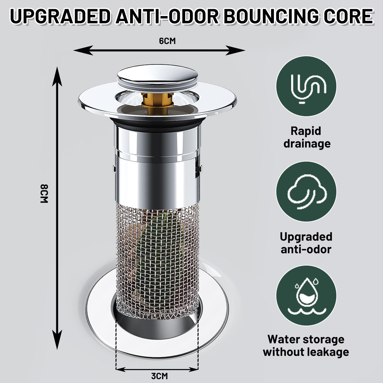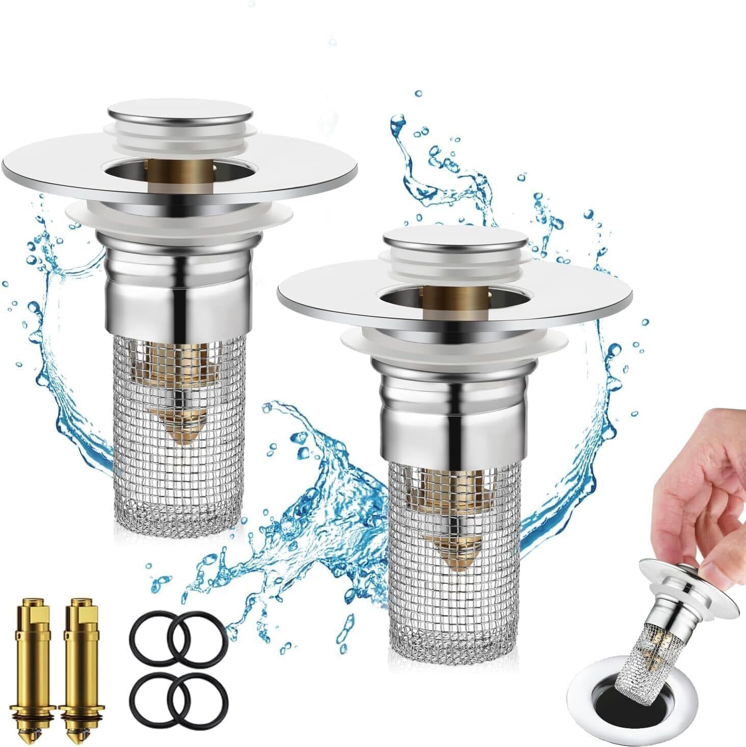 Schluss mit verstopften Abflüssen! Dieses clevere Pop-up Ablaufventil mit integriertem Sieb fängt Haare, Essensreste und anderen Schmutz zuverlässig ab. Einfach antippen zum Öffnen, schon fließt das Wasser problemlos ab. Aus hochwertigem Edelstahl und Kupfer gefertigt - rostfrei und langlebig. Passt in die meisten Waschbecken mit Lochdurchmessern von 33-55mm. Die Reinigung ist denkbar einfach: Sieb rausnehmen, ausspülen, fertig! Perfekt für Küche, Bad oder sogar den Balkon. Ob zu Hause, im Hotel oder Restaurant - dieser Filter sorgt für freie Abflüsse und weniger Ärger. Vor dem Kauf am besten dein Abflussloch ausmessen!