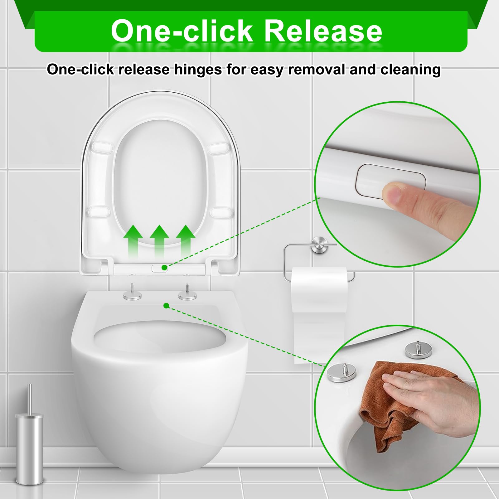 Dieser Toilettensitz ist so throughdacht! 2-in-1 Design: Ein Sitz für Erwachsene und ein integrierter Kindersitz. Der Kindersitz ist magnetisch - kannst ihn einfach hochklappen wenn die Großen aufs Klo müssen. Mit Absenkautomatik - Deckel und Sitz schließen sanft und leise von alleine. Kein Knallen mehr! Aus stabilem Polypropylen - hält bis zu 200 kg aus und verformt sich nicht. Quick-Release Funktion: Ein Knopfdruck und du kannst den ganzen Sitz abnehmen - super für die Reinigung! Anti-Rutsch-Kissen unten - rutscht nicht und macht keine Geräusche. Passt für die meisten ovalen Toiletten - Außenring 37,1x44,8 cm, Innenring 23x29,1 cm. Montage in 5 Minuten - alles dabei was du brauchst. Einfach die Schrauben anpassen, festziehen, fertig. Perfekt für Familien mit Kindern - praktisch und sicher. Sieht schick aus in Weiß und ist super hygienisch. Einfach ein geniales Teil das den Badezimmer-Alltag so viel angenehmer macht. Probier's aus - du wirst begeistert sein!