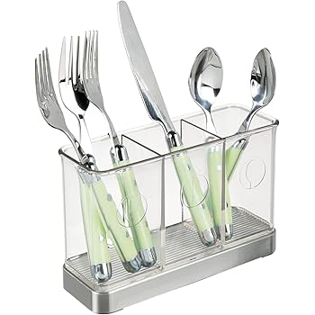 Ordnungs-Fans, dieser DECOBELLA Besteckhalter ist die Lösung für eure Spüle! Mit 3 separaten Fächern für Messer, Gabeln und Löffel habt ihr endlich alles perfekt sortiert. Das moderne graue Design sieht nicht nur super aus, sondern integriert sich auch harmonisch in jede Küche. Der praktische abnehmbare Bodenbehälter macht das Entleeren von überschüssigem Wasser zum Kinderspiel - kein lästiges Ausgießen mehr! Mit kompakten Maßen von 13x13,5x23cm ist der Halter platzsparend und passt auch in kleinere Spülbecken. Einfach zu reinigen und vielseitig einsetzbar - ob in der Spüle oder auf der Arbeitsfläche. Damit wird das lästige Bestecksortieren endlich zur leichten Aufgabe und eure Küche sieht immer aufgeräumt aus. Einfach genial!