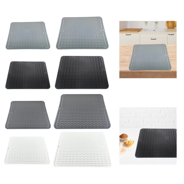 Diese Silikon-Abtropfmatte für die Küche ist ein echter Alleskönner! Mit cleverem geneigtem Design - das Wasser läuft einfach ab und deine Arbeitsplatte bleibt trocken! Hitzebeständig bis 220°C - kannst du heiße Töpfe direkt draufstellen! Die rutschfeste Unterseite hält bombenfest, verrutscht nichts! Maße: 40x32,5cm - perfekt für die meisten Spülen. Aus lebensmittelechtem Silikon, leicht zu reinigen und hygienisch. Ob für Geschirr, Gemüse oder Küchenutensilien - diese Matte macht alles mit! In schwarz, grau oder beige erhältlich. Endlich Ordnung und Sauberkeit in der Küche - ein Muss für jeden Haushalt!