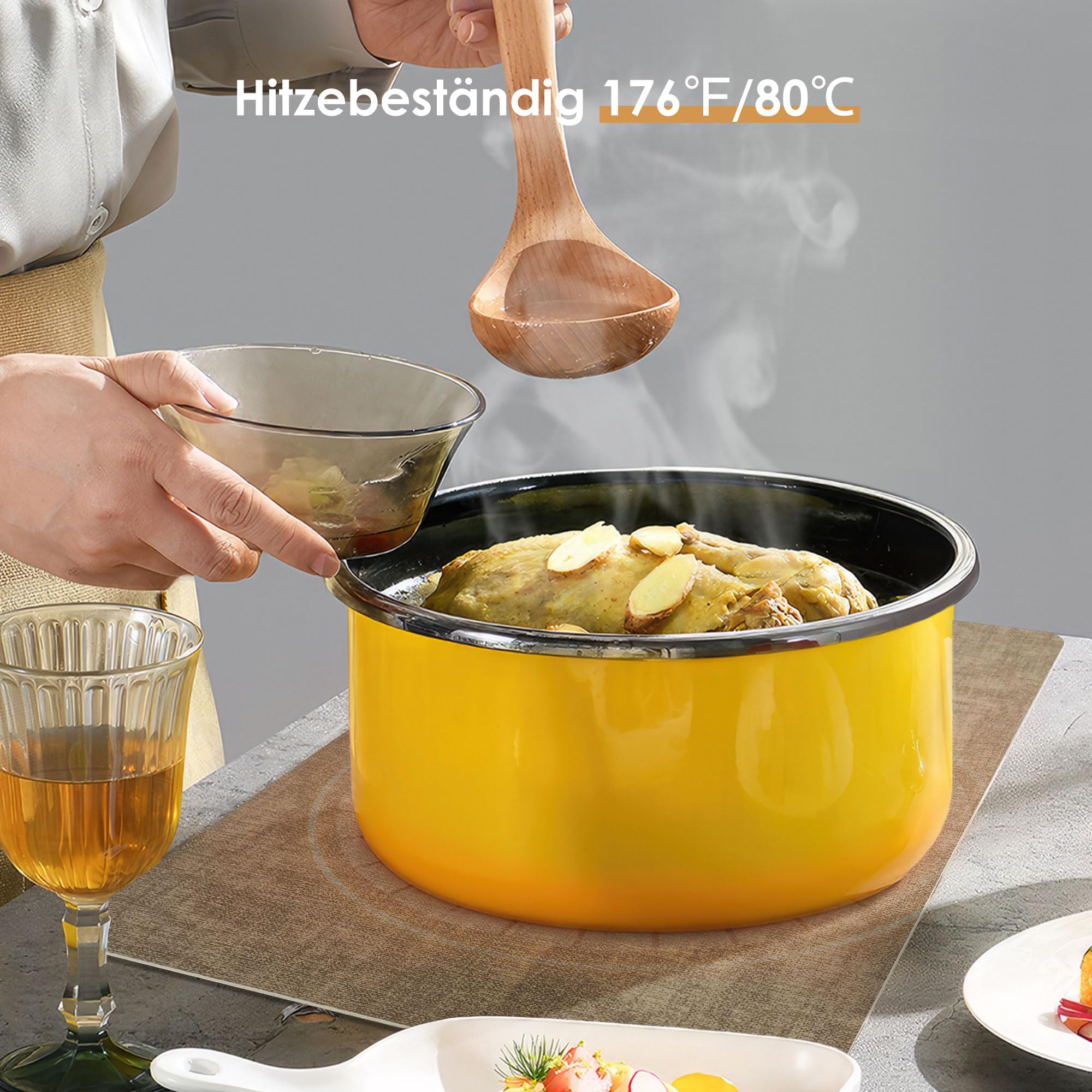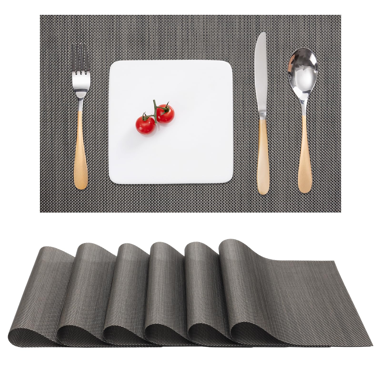 Schütze deinen Tisch in Style! Diese 6-teiligen Tischsets von KitchenBoss sind nicht nur super praktisch, sondern sehen auch noch toll aus. Mit ihrem zweiseitigen Design in Hellgrün und Beige passen sie zu verschiedenen Tischdekorationen und bringen Frische in dein Esszimmer. Aus hochwertigem PVC gefertigt, sind sie wasser- und ölabweisend - Flecken lassen sich einfach abwischen. Die Sets sind rutschfest und hitzebeständig bis 80°C, sodass auch heiße Teller kein Problem sind. Mit den Maßen 43x30cm bieten sie ausreichend Platz für Teller, Besteck und Gläser. Perfekt für den Esstisch, aber auch für Küche, Büro oder andere Bereiche. Einfach mit einem feuchten Tuch abwischen und sie sehen aus wie neu - keine lästige Maschinenwäsche nötig. Praktisch, langlebig und dekorativ zugleich!