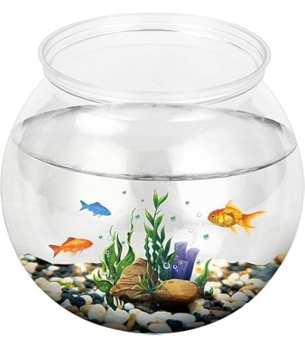 Total niedliches rundes Fischglas von Acouto! Aus robustem Kunststoff - also absolut bruchfest und sicher, auch für Kinder. Perfekt als Mini-Aquarium für den Schreibtisch, Bücherregal oder als Deko-Element. In zwei Größen erhältlich: S mit 10,5 cm Durchmesser oder L mit 12,6 cm. Wasserdicht und auslaufsicher - ideal für kleine Fische oder einfach nur als stylische Deko. Super für Karneval, Partys oder als Geschenk. Leicht zu reinigen und überall einsetzbar. Bringt Leben und Farbe in dein Zuhause - ohne die Gefahr von zerbrochenem Glas!
