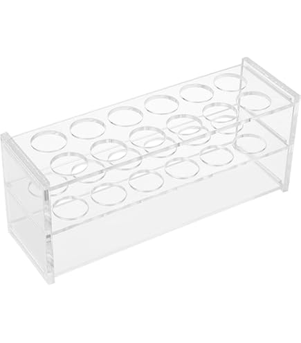 Ordnung im Labor! Dieser Reagenzglashalter aus Acryl hat 15 Löcher mit 8mm Durchmesser für deine Reagenzgläser. Mit 19,8x13,4x7,45 cm bietet er genug Platz und sorgt für klare Sicht auf den Inhalt. Hochtemperaturbeständig und resistent gegen Säuren/Laugen. Einfach zusammenzubauen und platzsparend zu verstauen. Perfekt für Schule, Hobby-Labor oder professionelle Anwendungen. Hält deine Reagenzgläser sicher und organisiert - alles immer griffbereit!