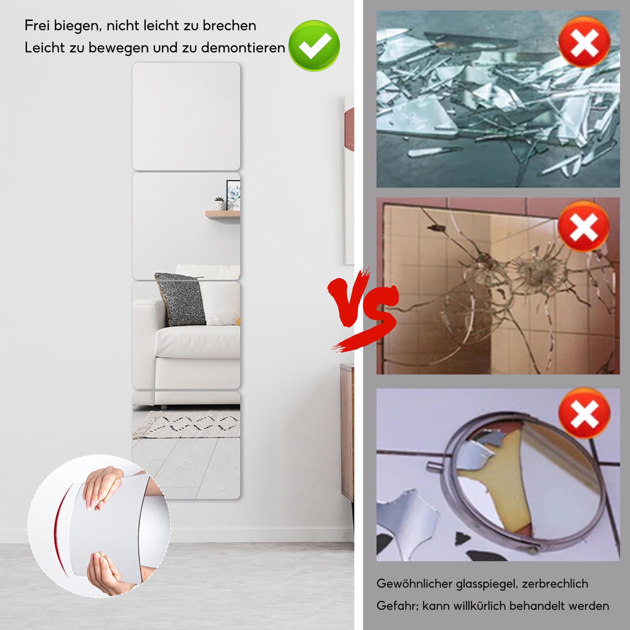 Spiegel aufhängen ohne Bohren? Kein Problem mit diesen Acryl-Klebespiegeln! Im Set sind 8 Stück enthalten, je 20x20cm groß. Einfach die Schutzfolie abziehen und auf glatte Oberflächen drücken - hält super auf Fliesen, Glas oder Möbeln. Aus bruchsicherem Acryl, also perfekt für Haushalte mit Kindern oder Haustieren. Viel leichter als Glasspiegel, aber genauso klar in der Reflexion. Kratzfeste Oberfläche die sich einfach mit einem weichen Tuch reinigen lässt. Wasserdicht und beschlagresistent - ideal fürs Badezimmer! Perfekt um kleine Räume optisch zu vergrößern oder als dekorative Elemente im Flur, Schlafzimmer oder sogar im Wohnzimmer. Mach deine Wände stylish ohne sie zu beschädigen - ideal für Mieter!