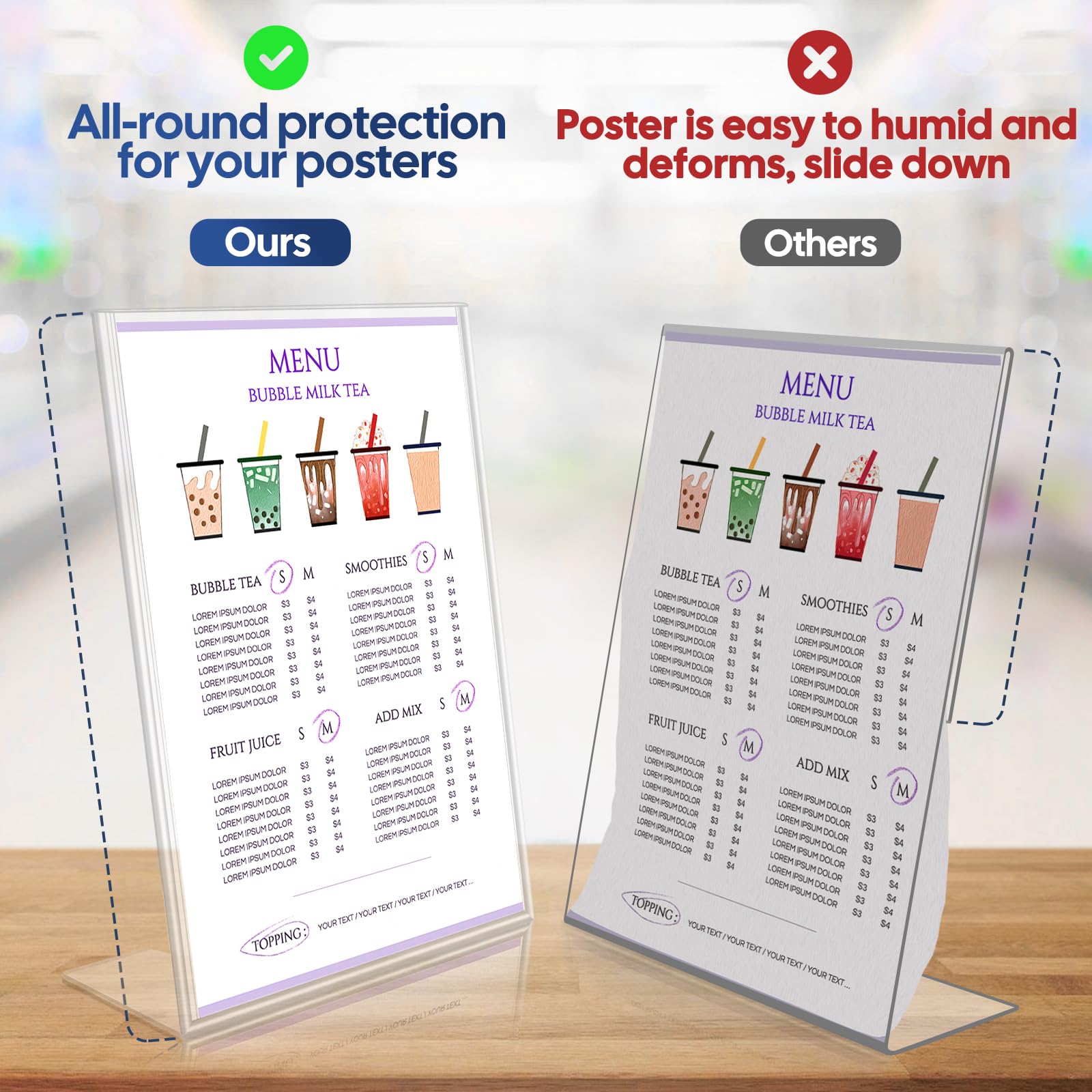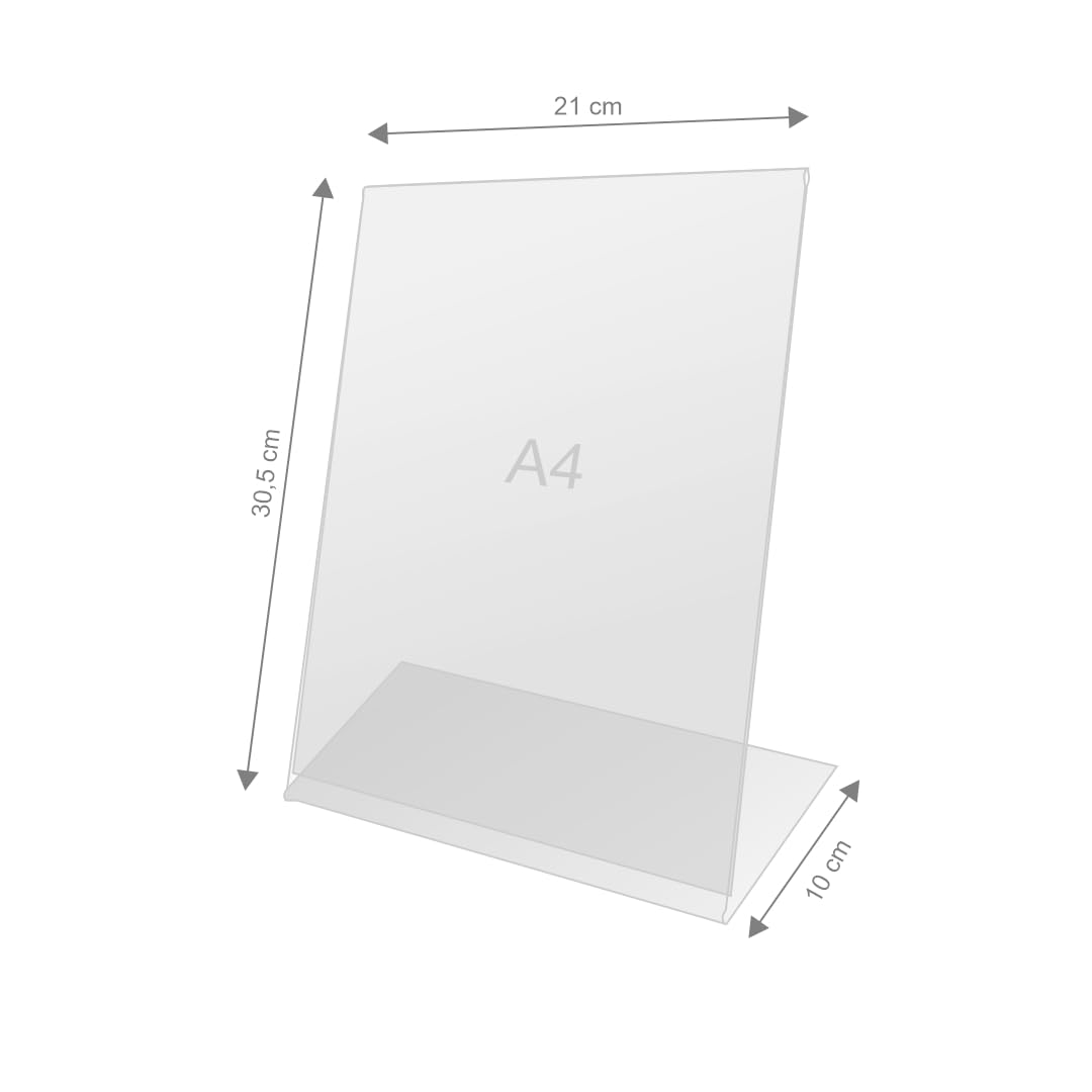 Organisation war noch nie so stylisch! Diese 5 transparenten A4 Tischaufsteller aus Acryl sind perfekt für Gastronomie, Büros oder Events. Mit Standard A4 Größe (21x29,7cm) passen Menüs, Fotos, Werbematerialien und Dokumente perfekt hinein. Die 75° Schrägstellung ist ideal für bequemes Lesen und spart dabei wertvollen Platz auf deinem Tisch. Das durchsichtige Design sieht modern aus und lenkt nicht vom Inhalt ab. Vorne und hinten transparent - perfekt um auf der Rückseite Notizen zu platzieren. Aus robustem Acryl, das wasserfest, ölbeständig und leicht zu reinigen ist. Ideal für Restaurants, Cafés, Hotels, Messen, Hochzeiten oder im Büro. Einfach das gewünschte Blatt einlegen und aufstellen - schon präsentierst du deine Informationen professionell und ordentlich. Mit 5 Stück hast du für jeden Bereich den passenden Aufsteller parat!