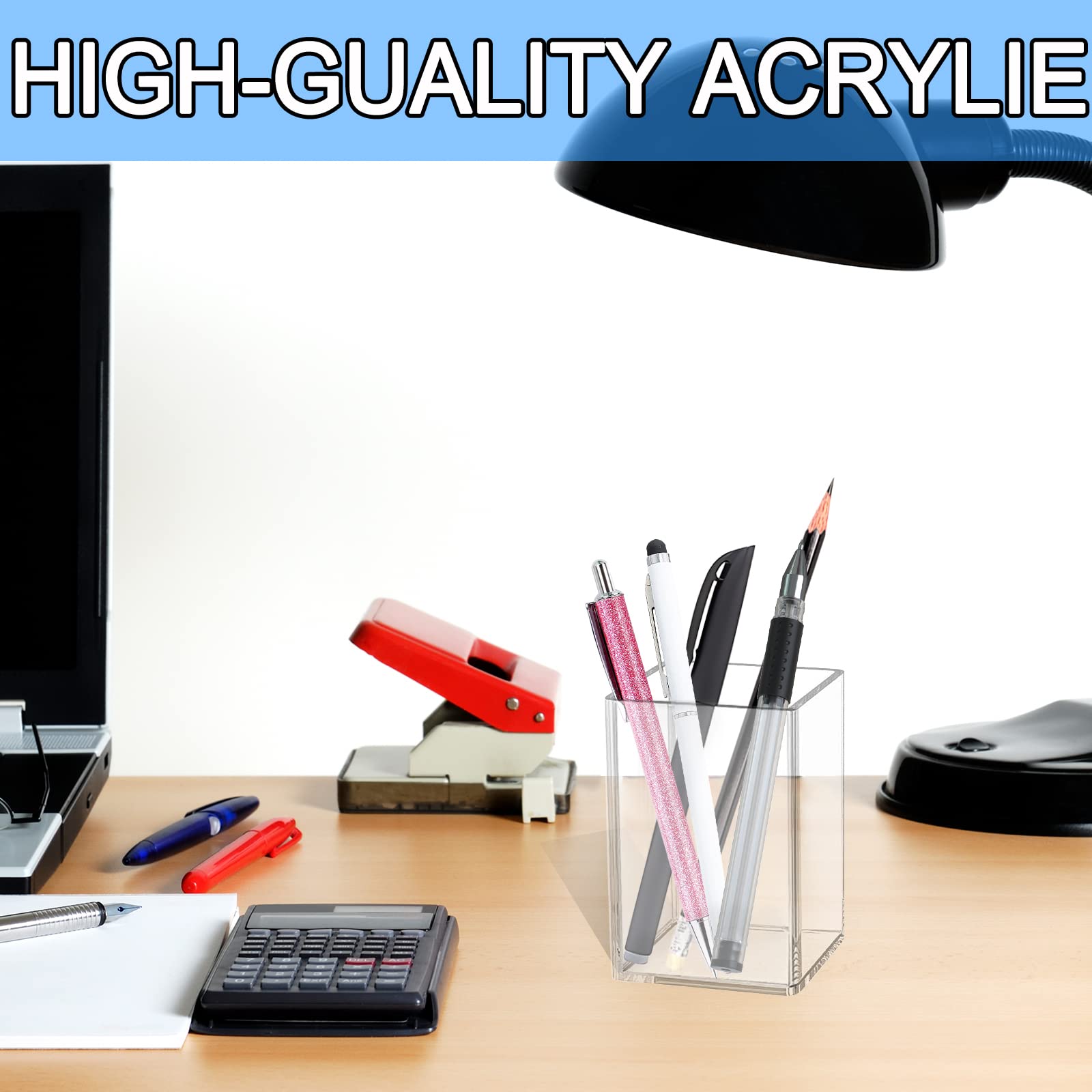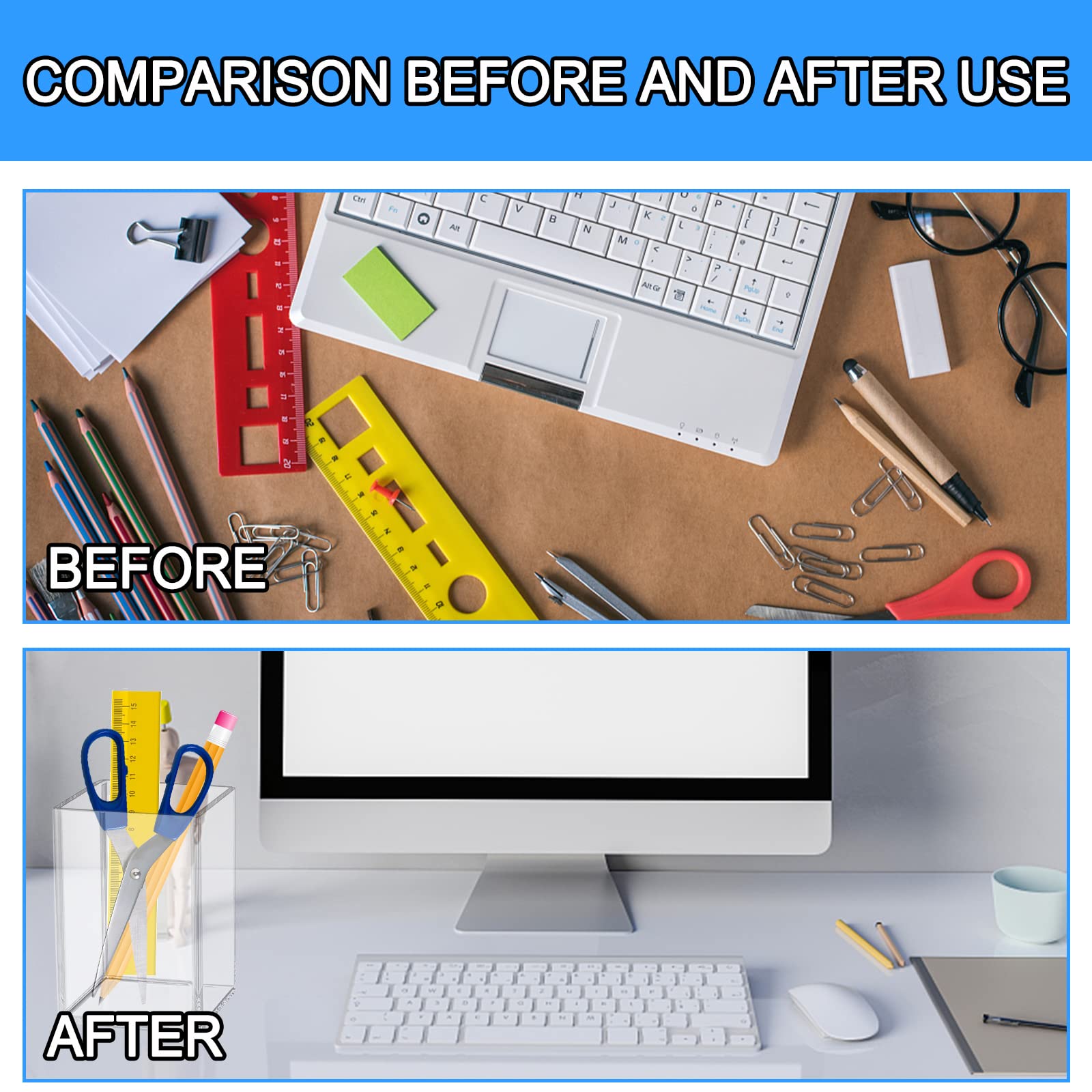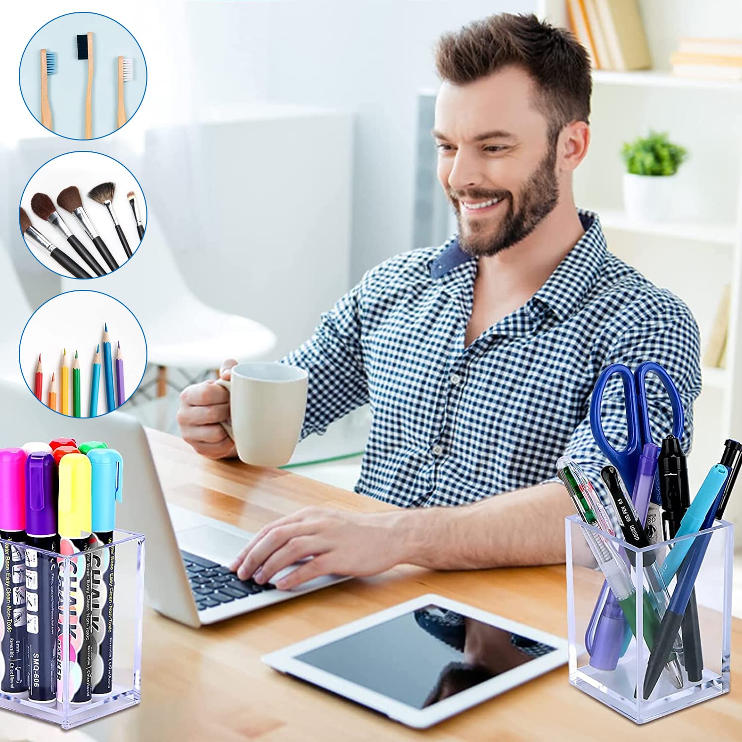 Diese stylischen Acryl-Stiftehalter bringen Ordnung auf deinen Schreibtisch! Das 3er-Set in praktischer Größe (10,5x6,7x6,7cm) ist perfekt um Stifte, Lineale, Marker und andere Schreibutensilien ordentlich zu verstauen. Aus hochwertigem, transparentem Acryl gefertigt - stabiler als Plastik und eleganter als Glas! Der verdickte Boden sorgt für standfesten Halt und die glatten Kanten kratzen nicht. Du siehst sofort was drin ist und findest alles blitzschnell. Aber das ist noch nicht alles: Die Halter sind super vielseitig verwendbar! Perfekt für Make-up Pinsel, Zahnbürsten im Bad, oder sogar als Mini-Pflanzentöpfe für Sukkulenten. Drei Behälter geben dir genug Platz um alles nach Kategorien zu sortieren - endlich kein Chaos mehr auf dem Schreibtisch! Spart Platz und Zeit beim Suchen. Ob im Homeoffice, im Kinderzimmer oder im Badezimmer - diese Organizer machen überall eine gute Figur. Einfach hinstellen und sich über die neu gewonnene Ordnung freuen!