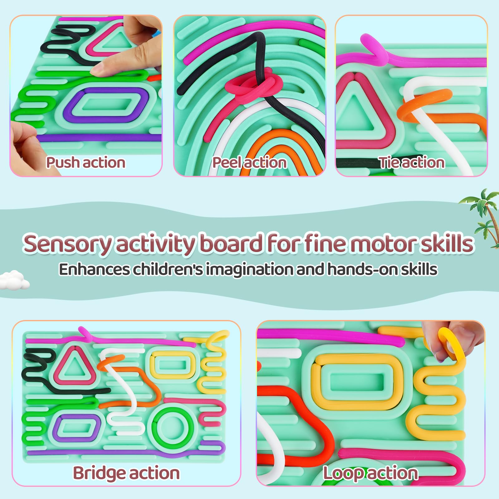 Beruhigung und Konzentration für Groß und Klein! Dieses doppelseitige Sensorik-Board aus lebensmittelechtem Silikon bietet unendliche Möglichkeiten zum Fummeln und Erkunden. Mit 29,5x20cm perfekt für unterwegs oder zu Hause. Die verschiedenen Texturen und leuchtenden Farben stimulieren die Sinne und helfen bei Unruhe, Angst oder Stress. Super für Kinder ab 3 Jahren und Erwachsene mit ADHS, Autismus oder einfach nur zum Abschalten. Inklusive 40 bunten Silikonstreifen und Reisetasche - immer griffbereit! Kantenlos und glatt, einfach zu reinigen. Fördert Feinmotorik und kreatives Spielen. Ein echter Alltagshelfer!