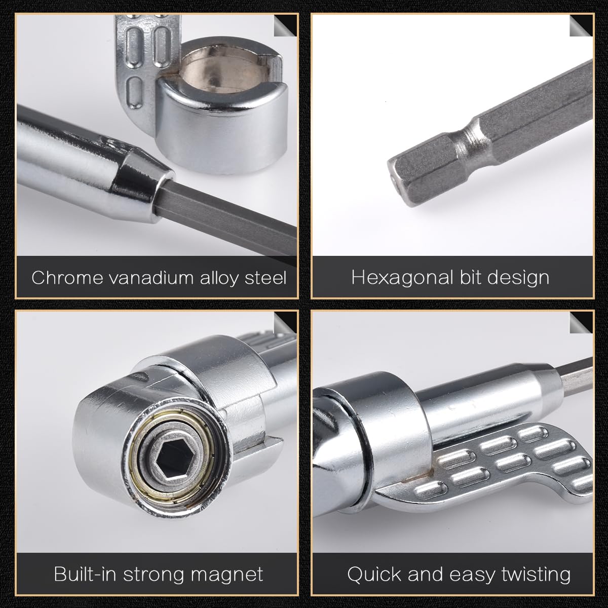 Endlich auch in engen Ecken schrauben! Dieser geniale 105° Winkelschrauber von HOHXEN ist die Lösung für alle schwer erreichbaren Stellen. Mit seiner kompakten Länge von 140mm kommt er überall hin, wo normale Schrauber scheitern. Der 1/4 Zoll Sechskant-Aufnahme passt für alle Standard-Bits und der starke Magnet hält sie sicher fest. Aus Chrom-Vanadium-Stahl gefertigt, ist das Teil extrem robust und hält auch intensiver Nutzung stand. Ob unter der Spüle, hinter Heizkörpern oder in Möbelecken - mit diesem Adapter schraubst du mühelos in jede Richtung. Perfekt für die Möbelmontage, Elektroinstallation oder Autoreparatur. Einfach auf deine Bohrmaschine oder den Akkuschrauber stecken und los geht's! Die drei Kugellager sorgen für einen smooth Lauf ohne Klemmerei. Ein absolutes Must-Have für jeden Heimwerker und Profi - damit machst du dir das Leben echt leichter!