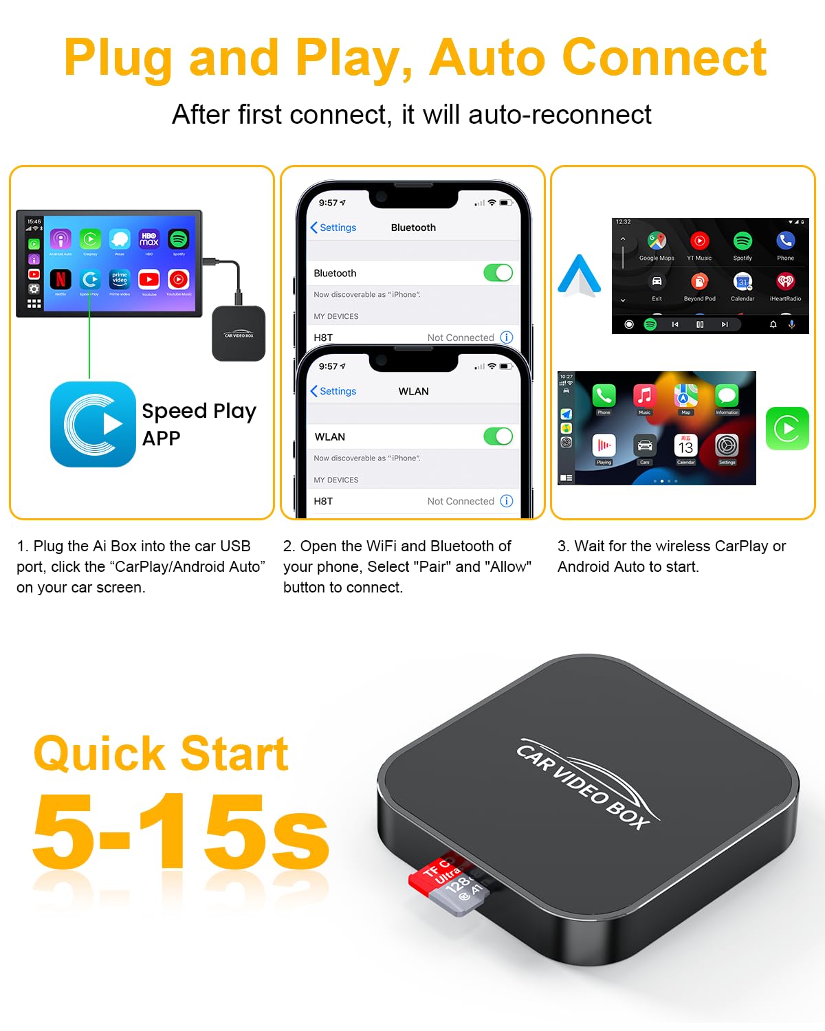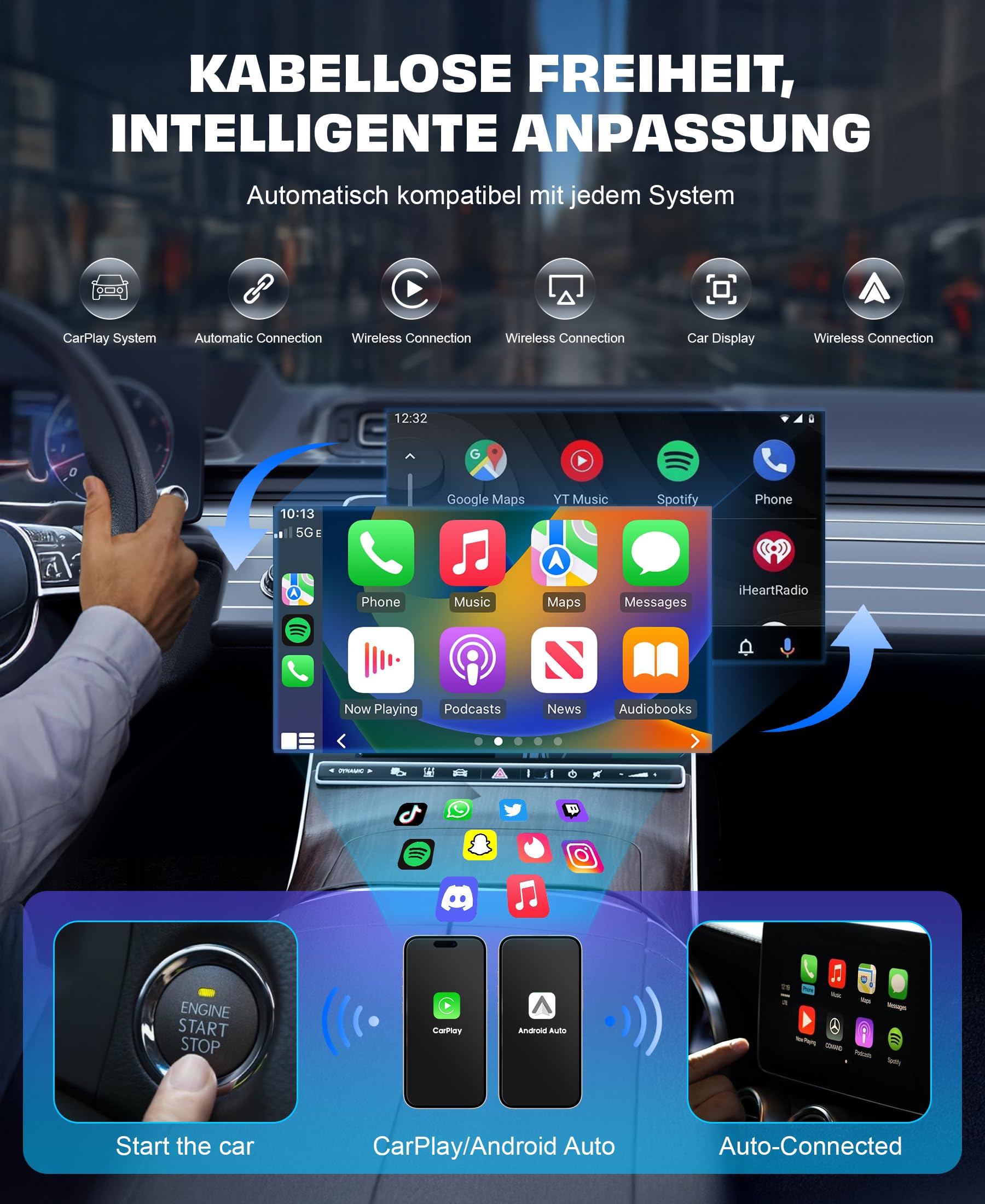 Schluss mit Kabelsalat im Auto! Der PAPER MATE Adapter macht dein kabelgebundenes CarPlay/Android Auto komplett wireless. Einfach einstecken - schon verbindet sich dein Smartphone automatisch. Keine Apps, keine komplizierte Einrichtung! Perfekt für alle, die ihr Auto ab 2016 fahren und native CarPlay/Android Auto Unterstützung haben. Der Dual-Chip sorgt für stabile Verbindung per Bluetooth 5.3 und WLAN. Navigation, Musik, Anrufe - alles läuft wie geschmiert über dein Display. Wichtig: Vorher checken, ob dein Auto wired CarPlay/Android Auto kann! Nicht kompatibel mit BMW, Tesla und einigen anderen Marken. 24 Monate Garantie inklusive - upgrade-fähig und mit lebenslangem Support!