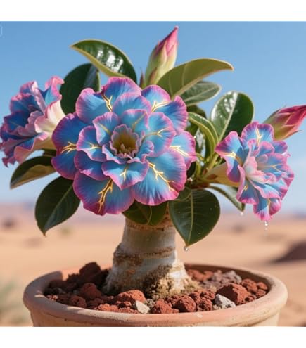 Die exotische Wüstenrose begeistert mit wunderschönen Blüten und ist erstaunlich pflegeleicht! Dieses Rhizom entwickelt sich zu einer robusten Pflanze, die Trockenheit liebt und auch mit wenig Wasser auskommt. Ideal für sonnige Standorte auf der Terrasse oder als Zimmerpflanze. Im Winter bei mindestens 8°C halten, im Sommer blüht sie in leuchtenden Farben. Perfekt für Bonsai-Fans oder alle, die was Besonderes suchen. Einfach einpflanzen, nicht zu viel gießen und an einem sonnigen Platz stellen - schon erlebst du tropisches Flair daheim!