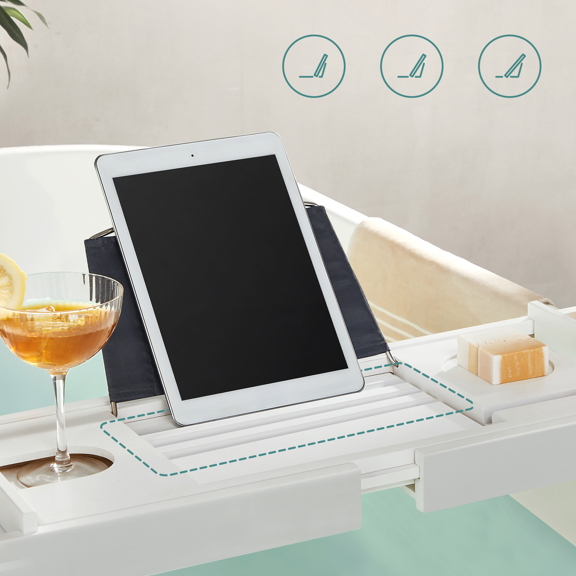 Verwandle dein Badezimmer in eine Wohlfühloase! Diese Jonathan Adler Badewannenablage in reinem Weiß ist sowohl praktisch als auch stylisch. Mit den Maßen 16,5cm Länge, 25,4cm Breite und 2,5cm Höhe bietet sie genug Platz für Badezubehör, Bücher oder eine Tasse Tee. Handgegossen und mit hochglänzendem Klarlack versiegelt, ist sie besonders leicht zu reinigen und kratzfest. Einfach auf den Badewannenrand legen - keine Montage erfordert. Das elegante Design passt zu jedem Badezimmer-Stil und verleiht dem Raum einen modernen Touch. Perfekt für entspannte Badestunden, wenn du alles griffbereit haben willst. Aus China importiert, aber mit internationalem Design-Anspruch. Mach deine Badewanne zum Lieblingsplatz im Haus!