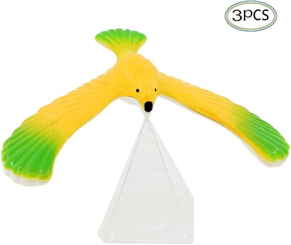 Dieser Adler balanciert auf fast allem - ein faszinierendes Spielzeug für Groß und Klein! Der Adler (13x10 cm) balanciert auf der mitgelieferten Pyramide (5,6x4 cm). Einfach auf Finger, Bleistift oder Tischkante setzen und staunen. Leicht anstoßen und er kreist elegant um sich selbst. Fördert Feinmotorik und Verständnis für Physik. Aus robustem Kunststoff in verschiedenen Farben. Perfekt als Geschenk, fürs Büro oder zur Entspannung. Einfaches Prinzip - große Faszination. Für Kinder und Erwachsene gleichermaßen spannend. Macht Physik greifbar und unterhaltsam. Ein kleines Wunder der Schwerkraft!