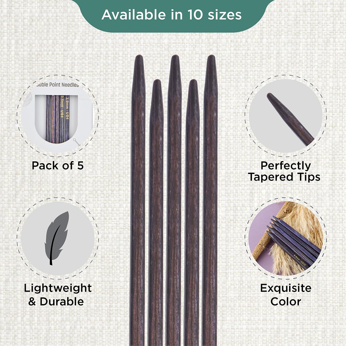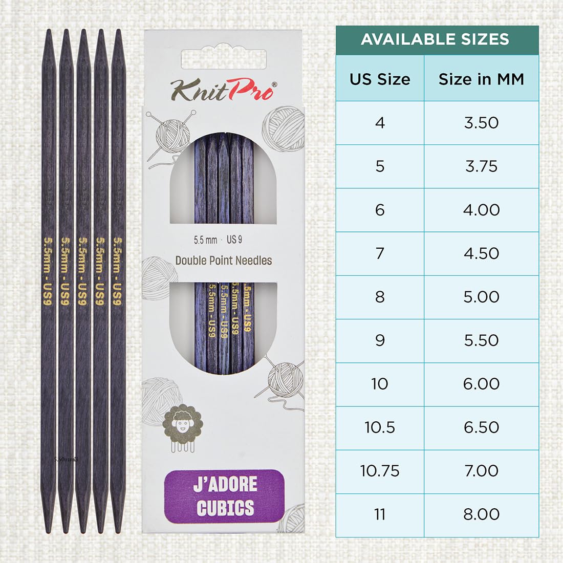 Strickvergnügen pur! Diese wunderschönen lila Cubics-Nadeln aus laminiertem Birkenholz liegen perfekt in der Hand. Das einzigartige quadratische Profil verhindert das Rutschen der Maschen - ideal für Socken, Mützen, Fäustlinge und alle kleinen Rundstrickprojekte. Ergonomische Form für ermüdungsfreies Stricken, besonders geeignet bei Arthritis oder für Anfänger. Im 5er-Set mit 20cm Länge und 4,00mm Stärke. In plastikfreier, FSC-zertifizierter Verpackung. Mach deine Strickprojekte zum Erlebnis!