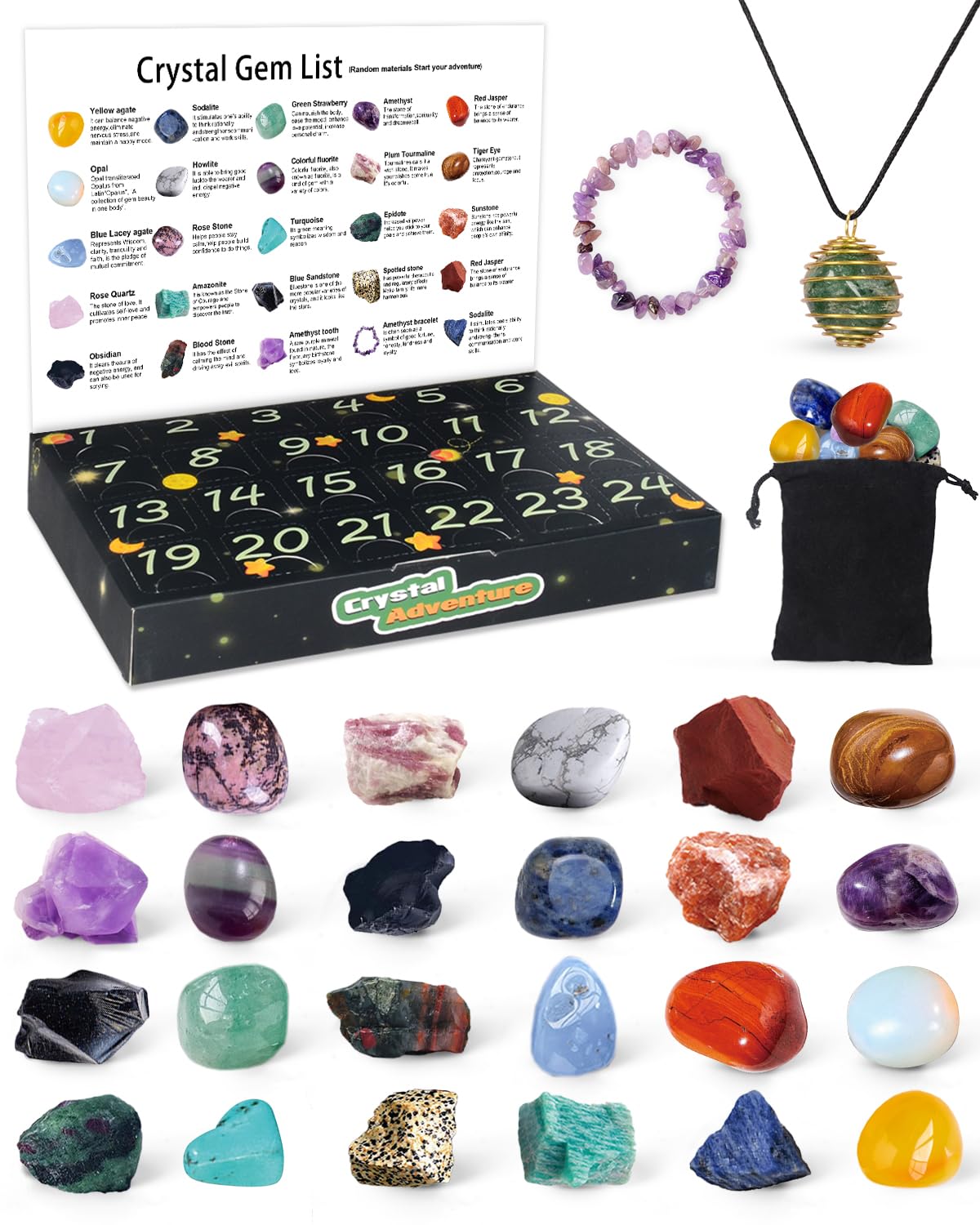 Weihnachten mal anders? Dieser Adventskalender füllt nicht den Magen, sondern die Vitrine! Hinter den 24 Türchen verstecken sich echte Kristalle und Steine - jeden Tag eine neue Überraschung. Die natürlichen Exemplare sind perfekt für kleine und große Sammler, die sich für Geologie interessieren. Der Kalender misst etwa 21,5x14,7x3 cm und sieht auch noch dekorativ aus, während man auf Weihnachten wartet. Egal ob für Kinder, die Steine lieben, oder Erwachsene, die ihre Sammlung erweitern wollen - hier kommt jeder auf seine Kosten. Das macht das Warten aufs Christkind gleich viel spannender! Ein besonderes Geschenk, das lange Freude bereitet und nicht nur Schokolade ist.