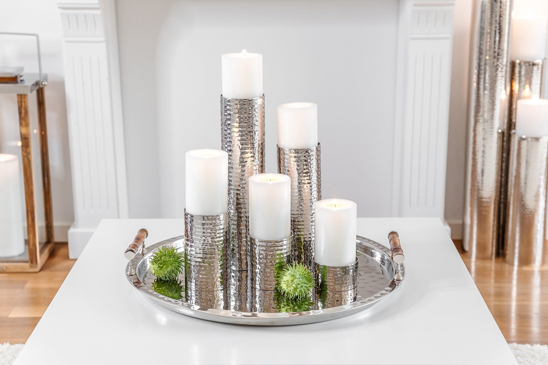 Eleganz für deine Tischdekoration! Der EDZARD Kerzenständer Agadir aus hochglanzpoliertem Edelstahl bringt stilvolle Atmosphäre in jeden Raum. Mit 15cm Höhe und 8,5cm Durchmesser perfekt für Stumpenkerzen bis 8cm. Die gehämmerte Optik verleiht dem Leuchter besonderen Charme. Ideal für festliche Anlässe, romantische Abende oder als dauerhafte Deko im Wohnzimmer. Kombinierbar mit der EDZARD Cornelius Dauerkerze. Ein zeitloses Design, das zu jedem Einrichtungsstil passt. Einfach Kerze platzieren, anzünden und den magischen Kerzenschein genießen. Mach dein Zuhause zum Wohlfühlort mit dieser hochwertigen Kerzendeko!