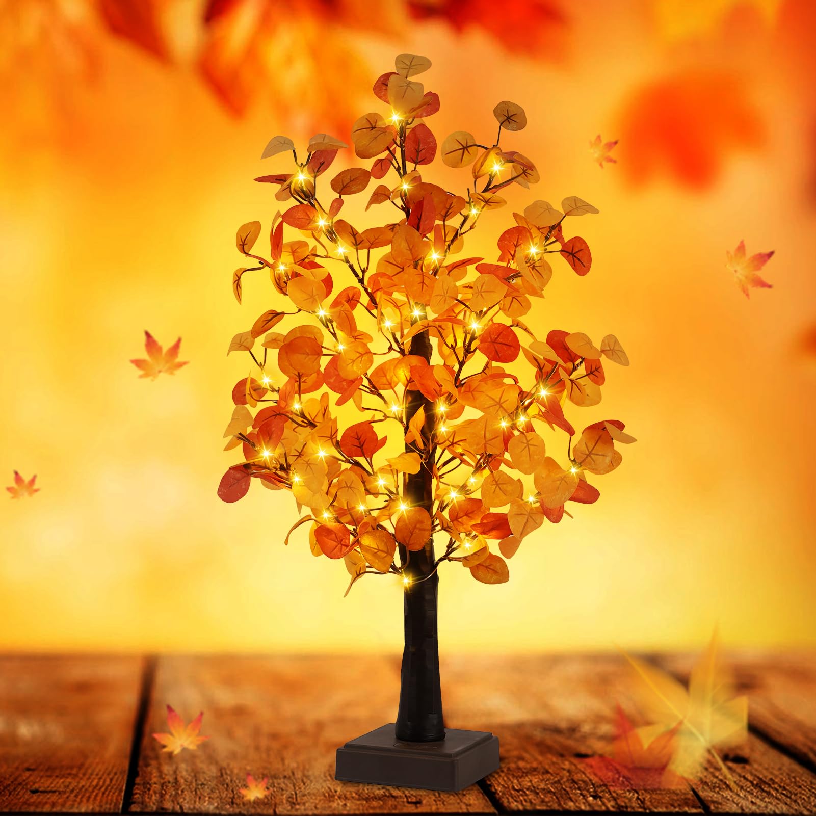 Ahornblatt Lichterbaum Mit 24 LEDs - 61cm Herbstdeko Mit Timer