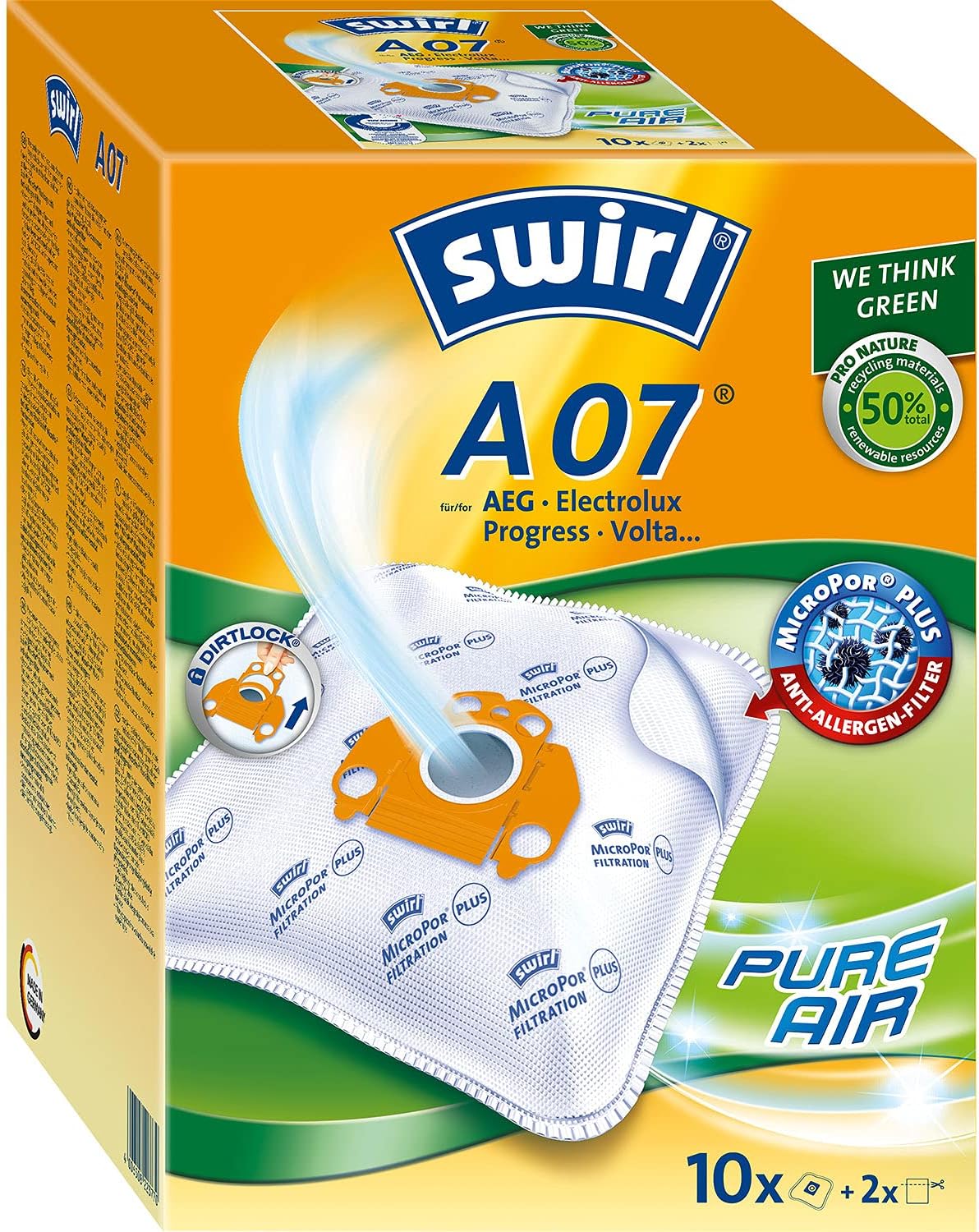 Swirl Staubsaugerbeutel A07 MicroPor Plus AirSpace - 8 Beutel + 2 Filter Für AEG Staubsauger