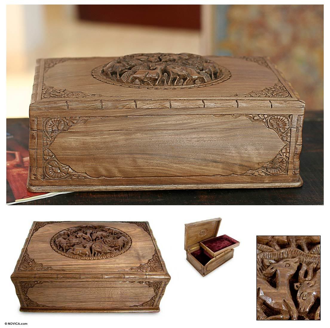 Wow, diese handgeschnitzte Holzdose von Ajuny ist einfach ein Traum! Jedes Stück wird von erfahrenen Handwerkern in Saharanpur - dem Zentrum für Holzhandwerk in Indien - einzeln gefertigt. Das keltische Lebensbaum-Motiv auf dem Deckel sieht nicht nur mega aus, sondern symbolisiert auch Stärke und Verbundenheit. Perfekt, um deine ganzen Schmuckstücke, Erinnerungen oder kleinen Schätze ordentlich zu verstauen. Die Box ist aus stabilem Mangoholz gemacht und hält ewig. Maße: Außen 9x6x6 Zoll, Innen 8x5x5 Zoll - also genau die richtige Größe für die meisten Schmuckkollektionen. Und das Beste: Sie ist so leicht, dass du sie überall mitnehmen kannst. Ob als Deko-Stück auf deiner Kommode oder als praktischer Aufbewahrungsorganizer - diese Kassette macht überall was her. Übrigens ein super Geschenk für Geburtstage, Hochzeiten oder Einweihungspartys! Die natürliche Holzoptik passt zu jedem Einrichtungsstil, und die feinen Schnitzereien zeigen, wie viel Liebe zum Detail in diesem Unikat steckt. Schützt deine Wertgegenstände vor Staub und Kratzern, während sie dein Zuhause aufwertet. Einfach ein zeitloses Stück, das du jahrelang lieben wirst - ob für dich selbst oder als besonderes Geschenk für jemand Besonderes.