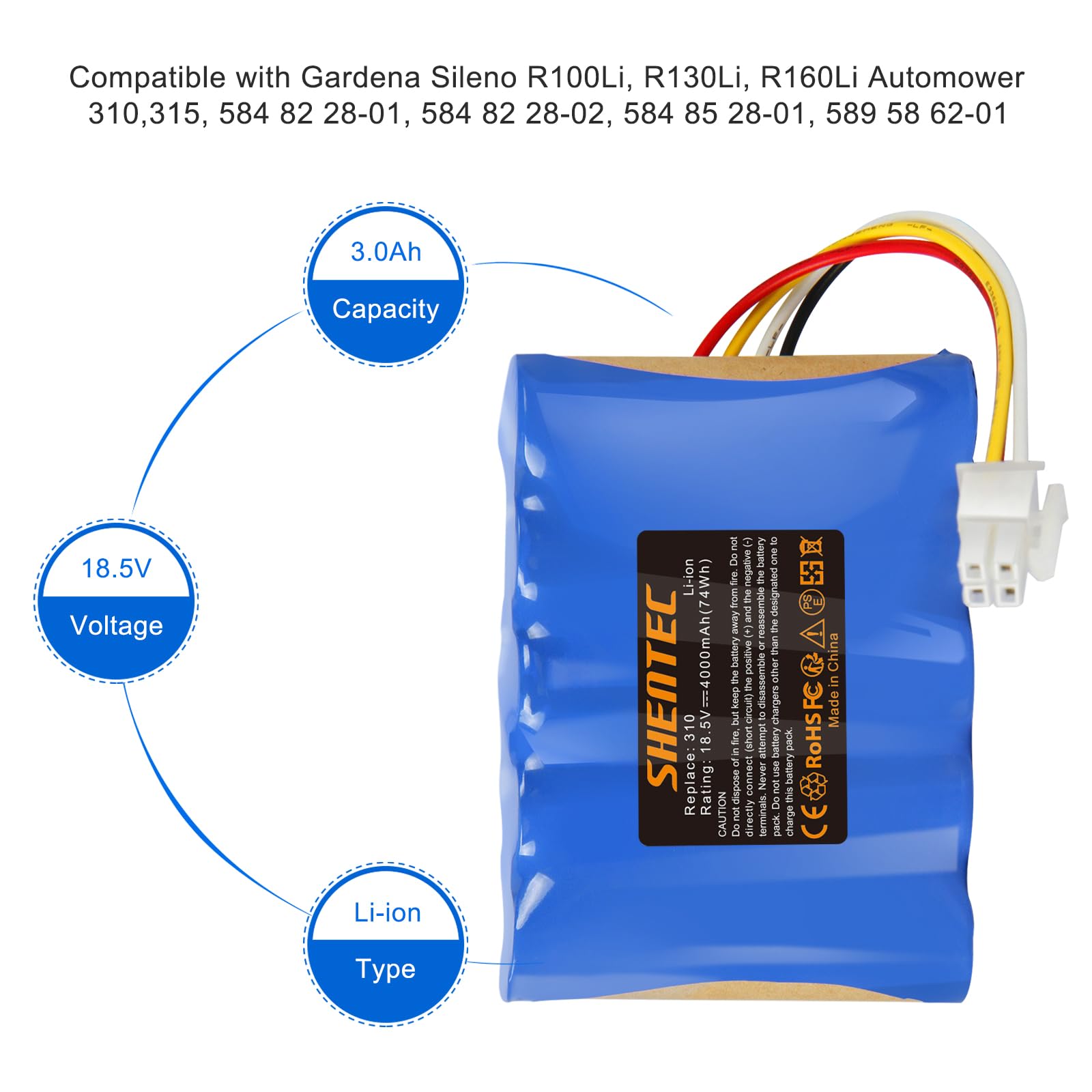 Nie wieder Stromprobleme beim Mähen! Dieser hochwertige Akku ist die perfekte Ersatzlösung für deine Gardena Rasenmäher R100Li, R130Li, R160Li (2016-2018) und Sileno Modelle. Kompatibel mit den Original-Ladegeräten und mit integriertem Kurzschlussschutz für maximale Sicherheit. Hunderte Ladezyklen möglich - das schont Umwelt und Geldbeutel. Durch strenge Qualitätskontrollen geprüft für zuverlässige Leistung. Einfach einsetzen, aufladen und dein Mäher ist wieder startklar. Passend für die Gardena Typennummern 584 82 28-01, 584 82 28-02 und 584 85 28-01. Hol dir die Power für deinen Garten!